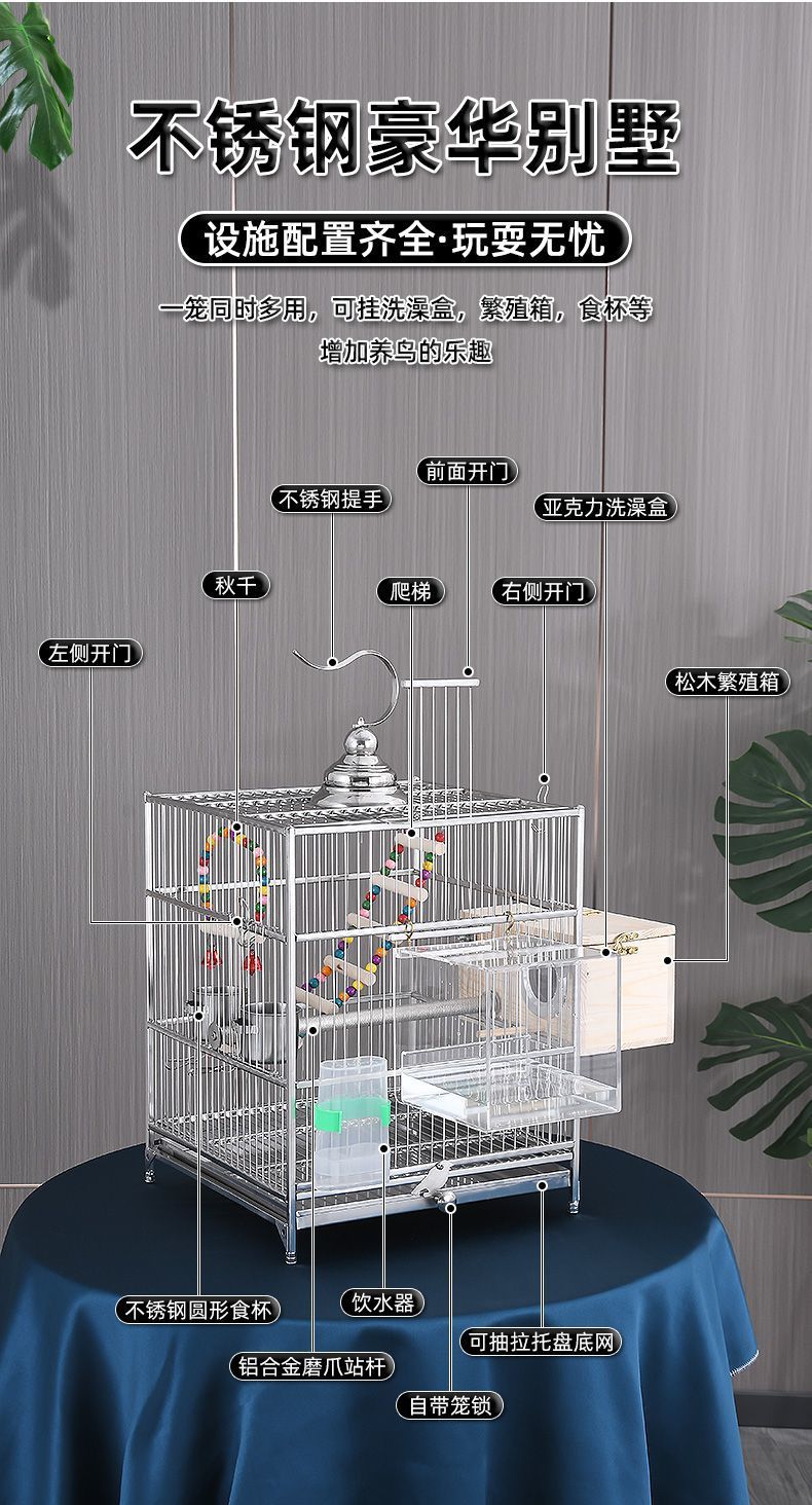 • 스테인레스 스틸 사각 케이지 + 중형 번식 상자/그네/사다리