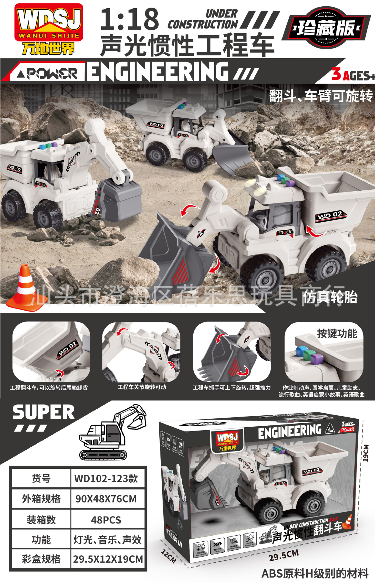• WD102-1/2/3 [소리와 빛 포함] 건설 차량 [3가지 스타일 랜덤]