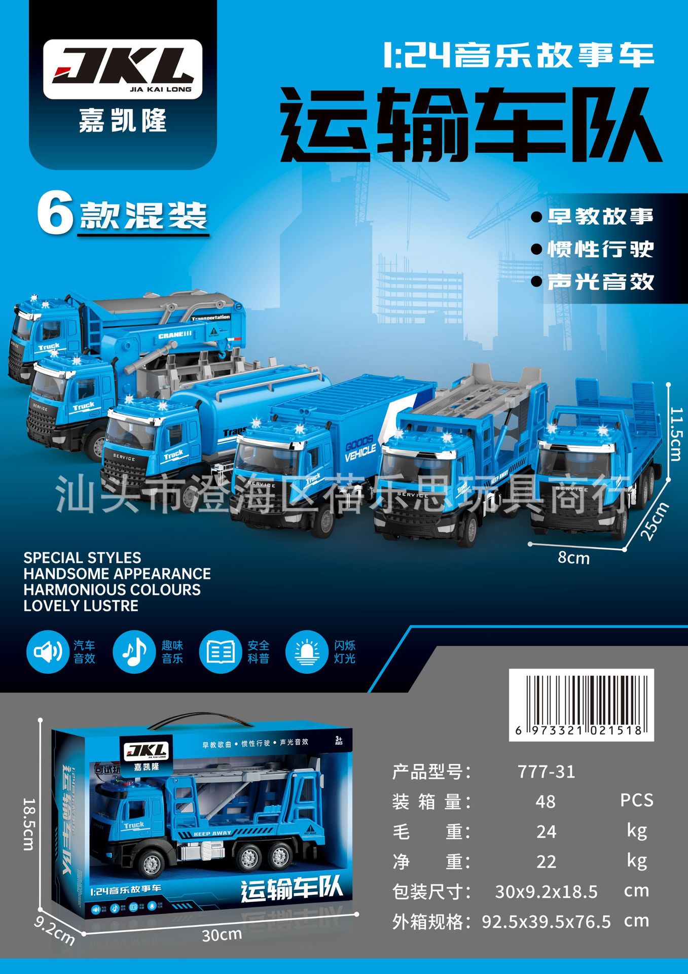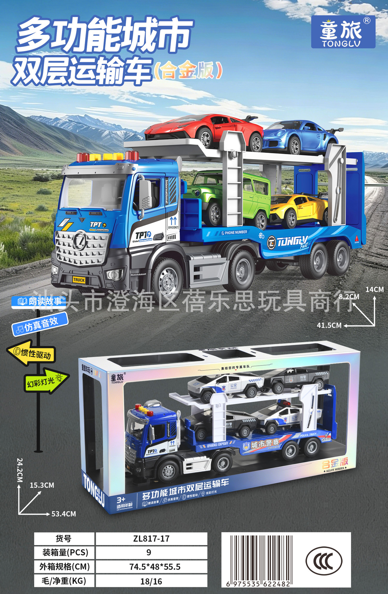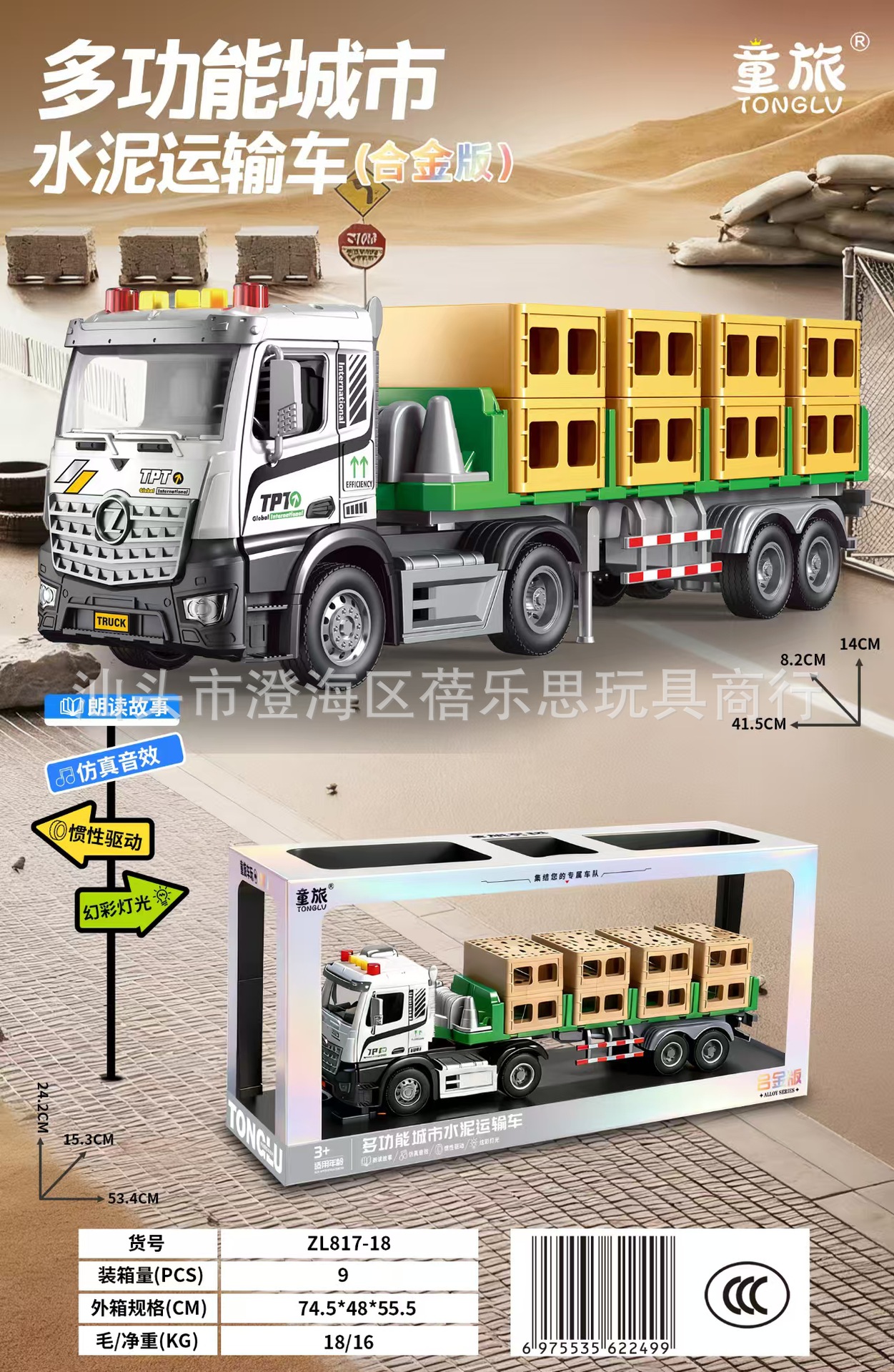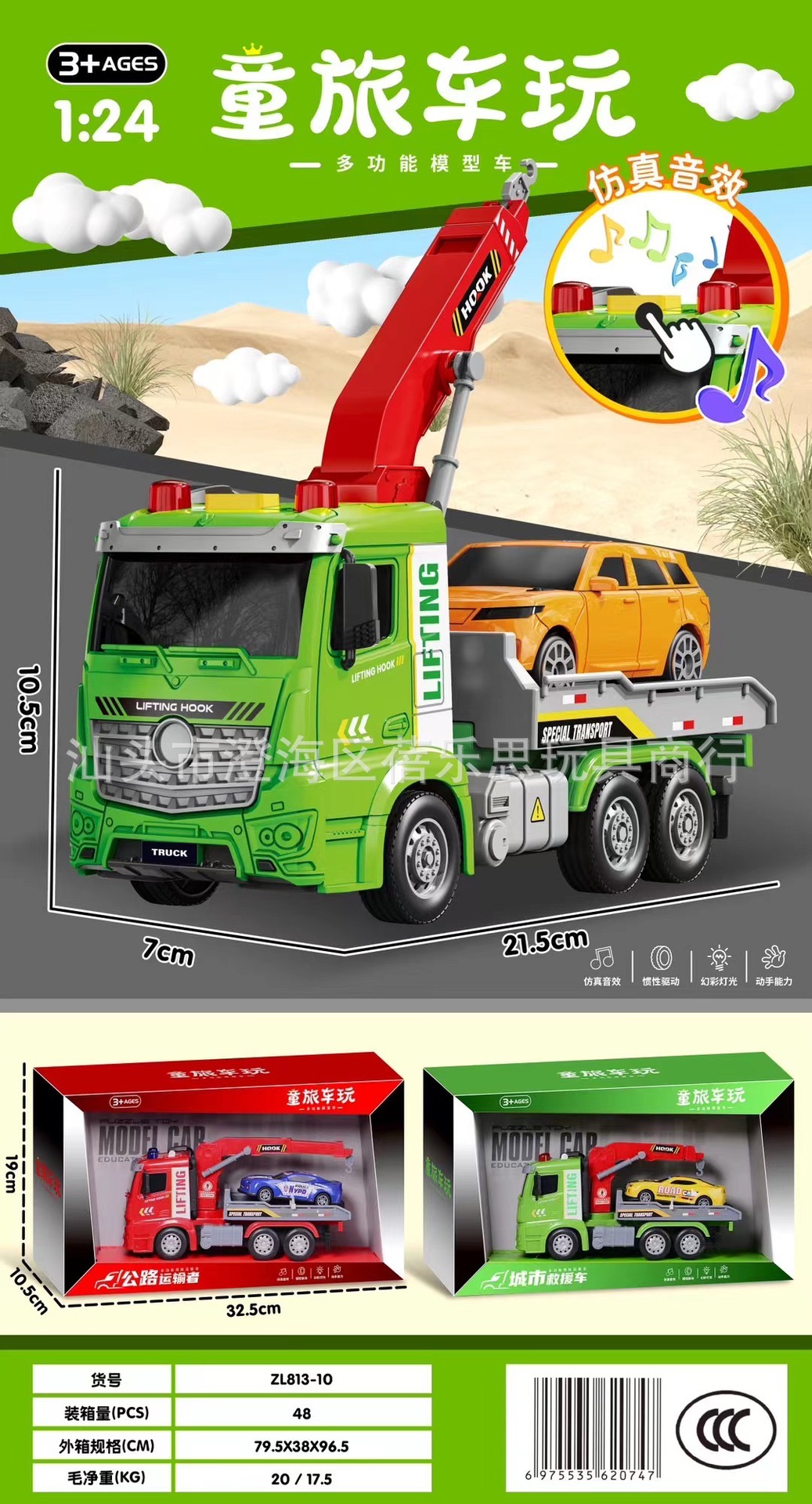 • 815-12 [초대형 선물 상자] 음향 효과가 포함된 중형 도로 운송 트럭 세트