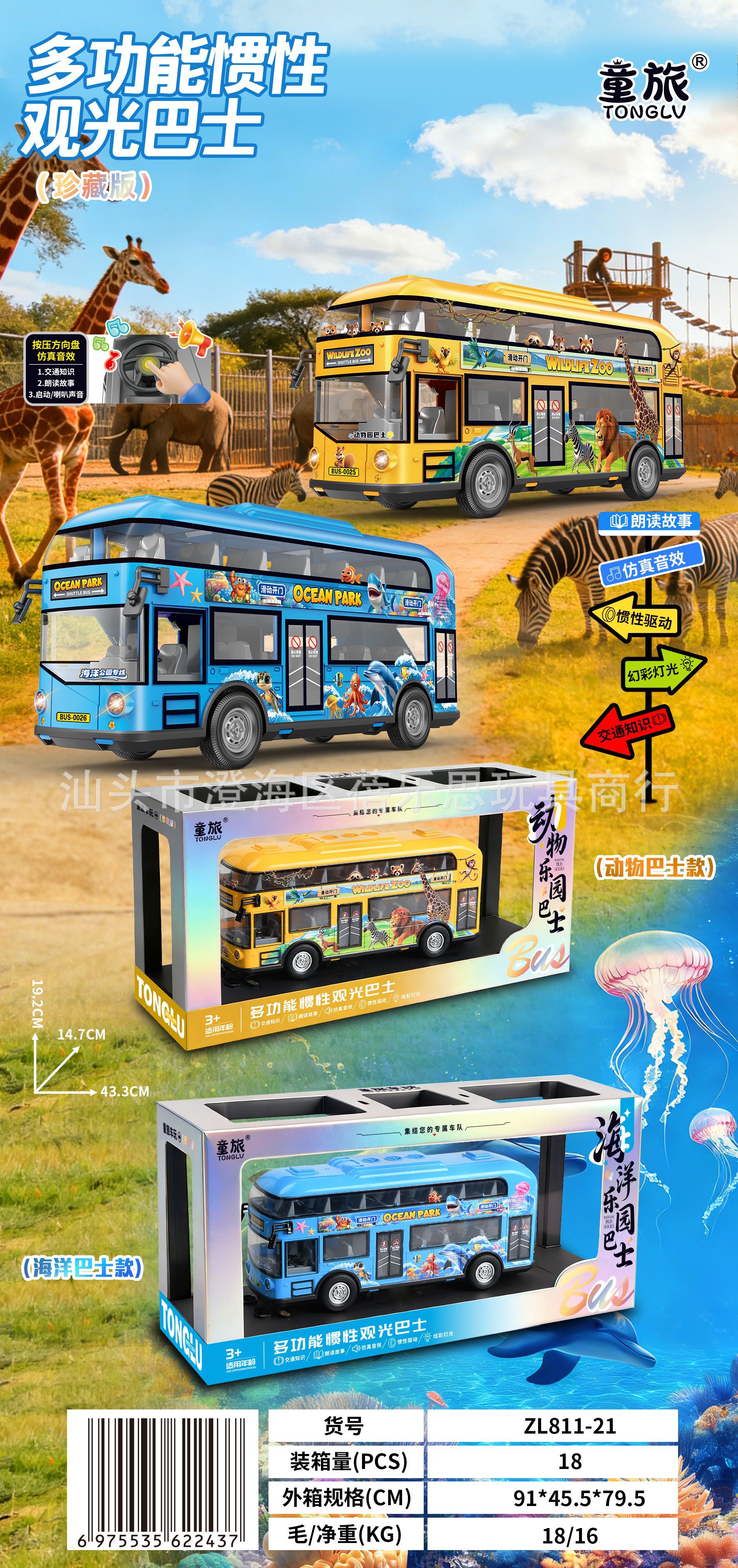 • 811-21 [사운드 & 라이트 기능] 대형 해양/동물 페스티벌 버스 [2종류 중 1종 랜덤 발송]