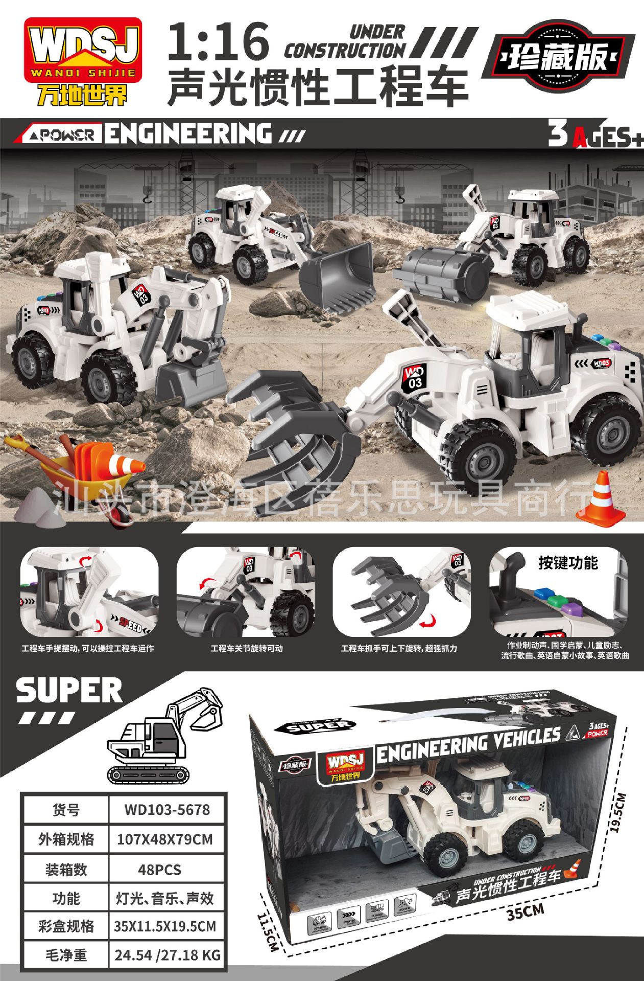 • WD107-B [사운드 & 라이트 기능 포함] 대형 굴삭기 불도저