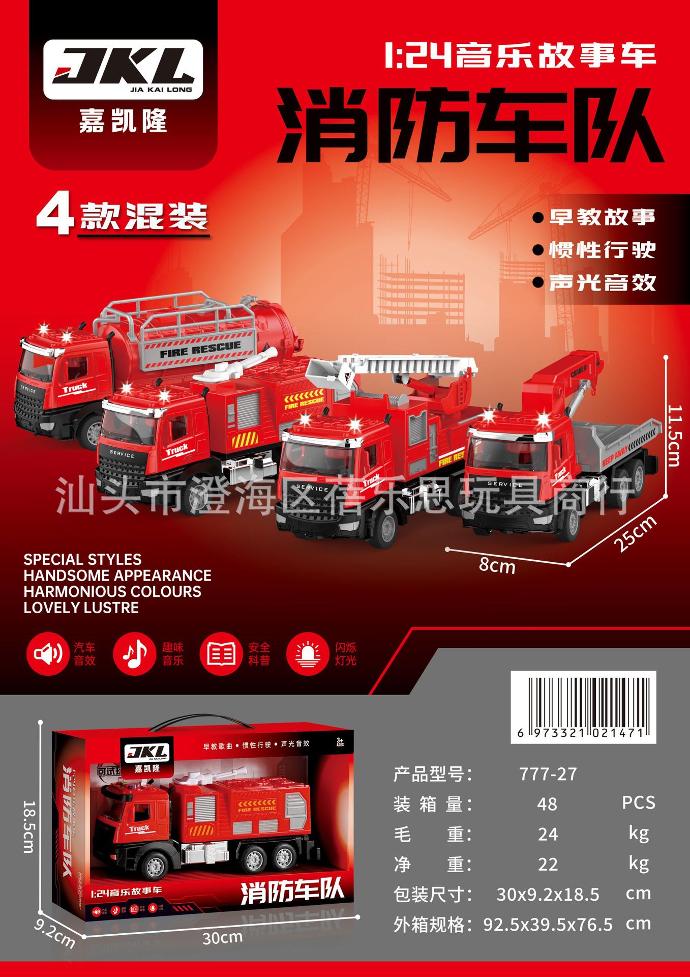 • 815-11 [초대형 선물 상자] 음향 효과가 포함된 중형 소방차 세트