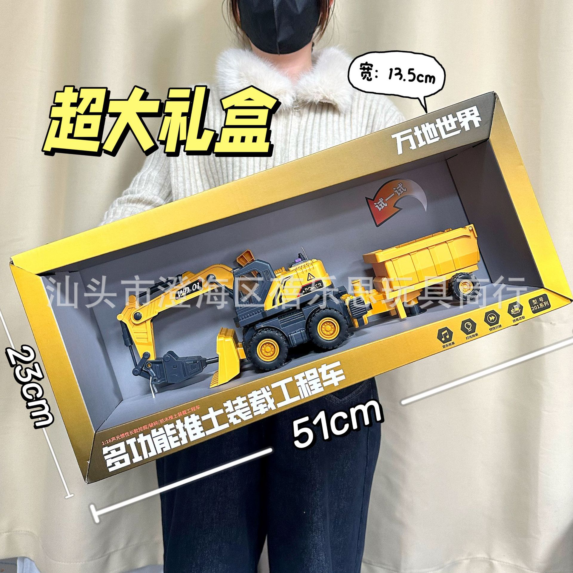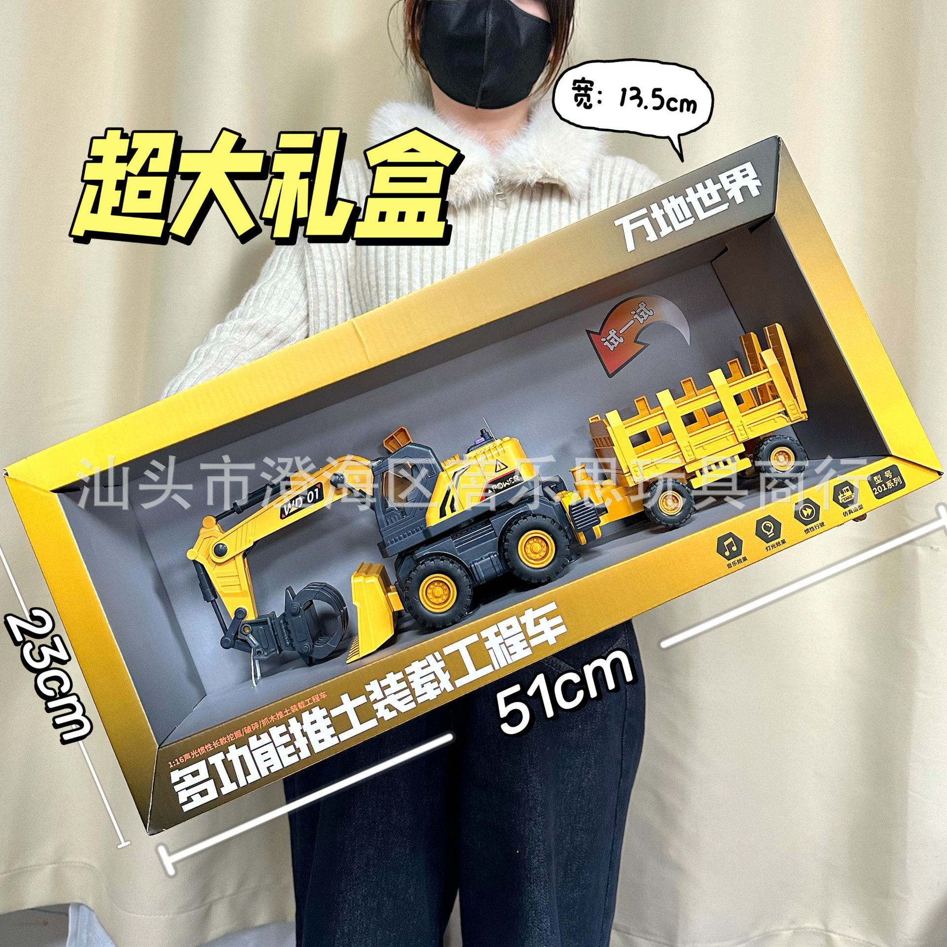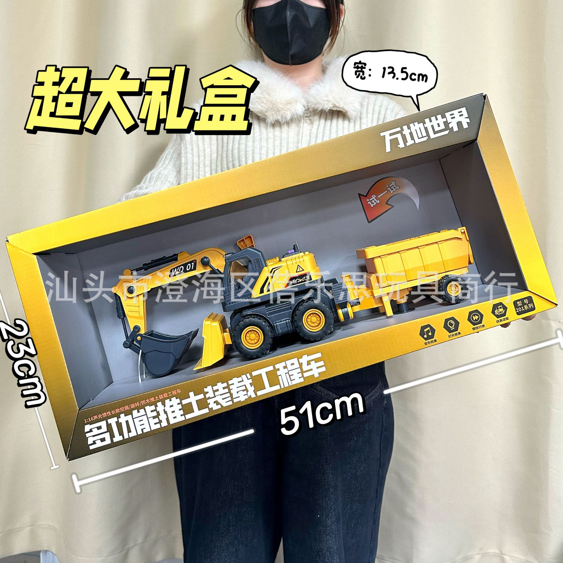 • WD201-A [소리와 빛이 있는] 불도저 + 굴착 및 적재 차량 [초대형 선물 상자]