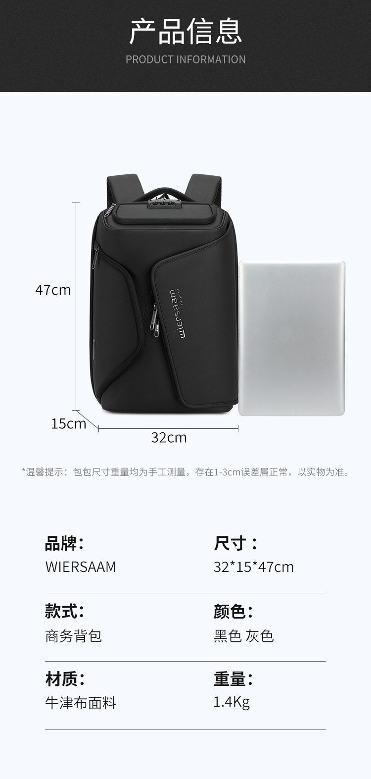 비즈니스 백팩 방수 남성용 도난방지 대용량 출장 다기능 여행용 컴퓨터 가방 가볍고 휴대하기 편리함