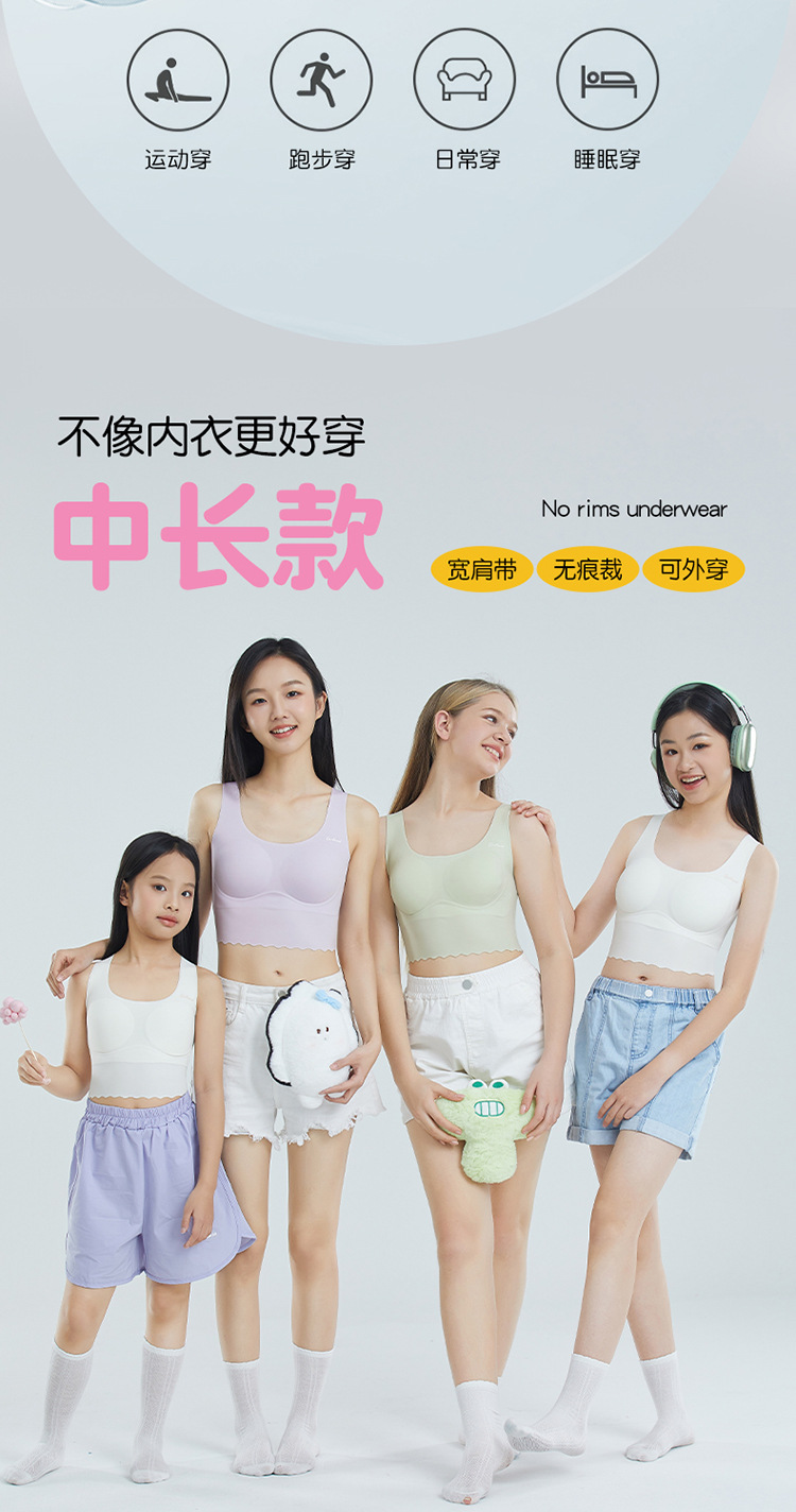 보이지 않는 Traceless Cloud Sense Girl's Underwear full stage 개발 고등학교 반 고정 컵 충격 방지 스포츠 조끼 시작