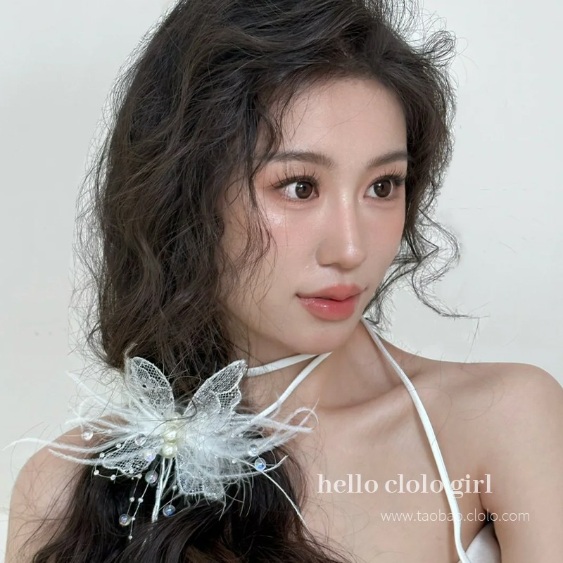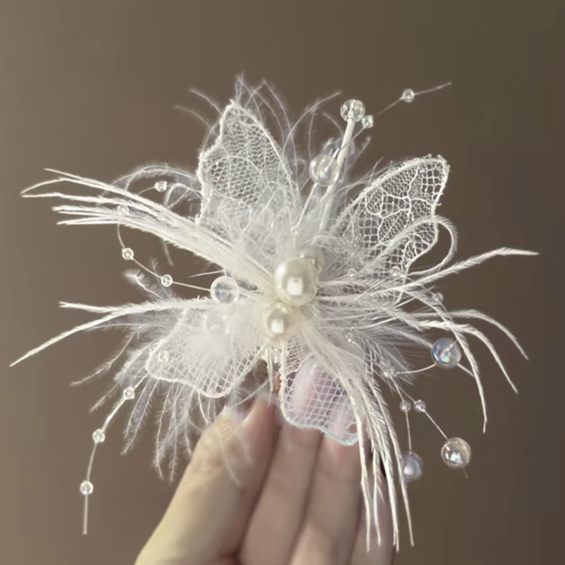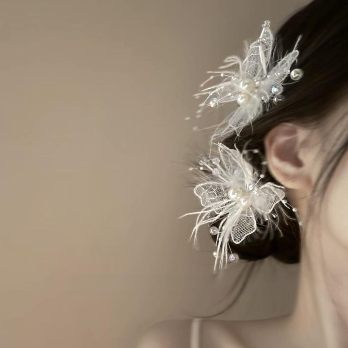 요정! 아름다운 레이스 깃털 머리핀! 절묘한 소녀의 하트 사이드 클립 헤어 올 매치 헤드웨어 여성