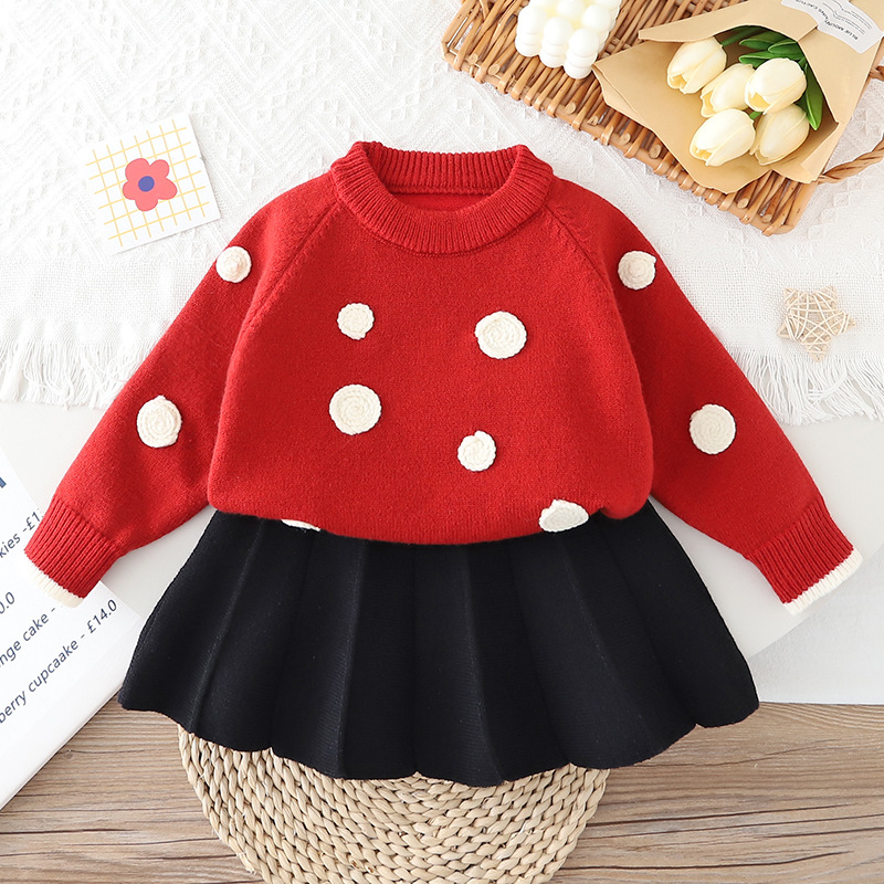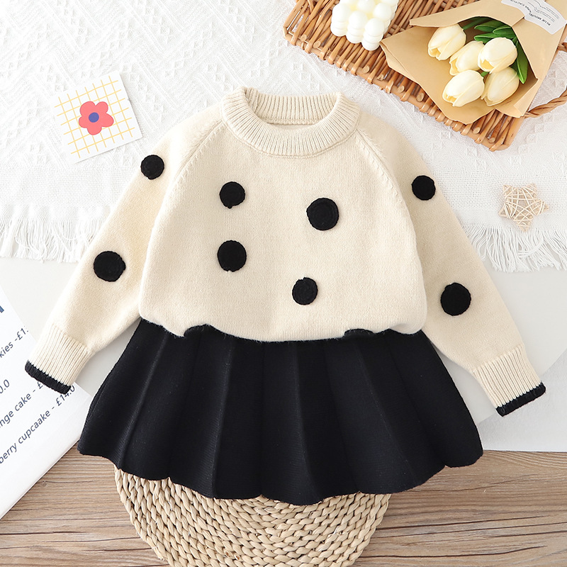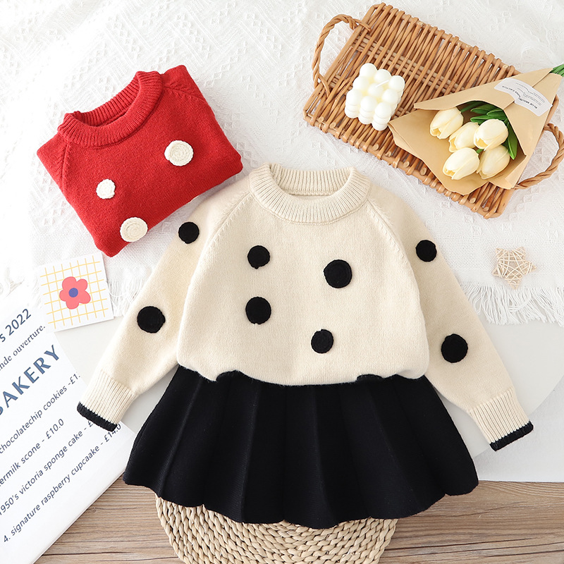 Ins 폭발 소녀 스웨터 2025 세트 귀여운 폴카 도트 단색 풀오버 니트 2 피스 한국 외국인