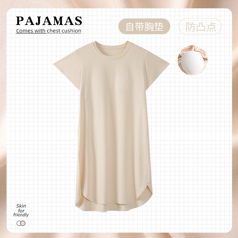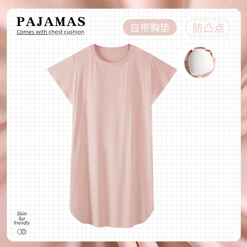 여성용 여름 나이트 드레스 모달, 가슴 패드 짧은 소매 얇은 아이스 실크 외부 홈 의류 잠옷 원피스스토어 가기