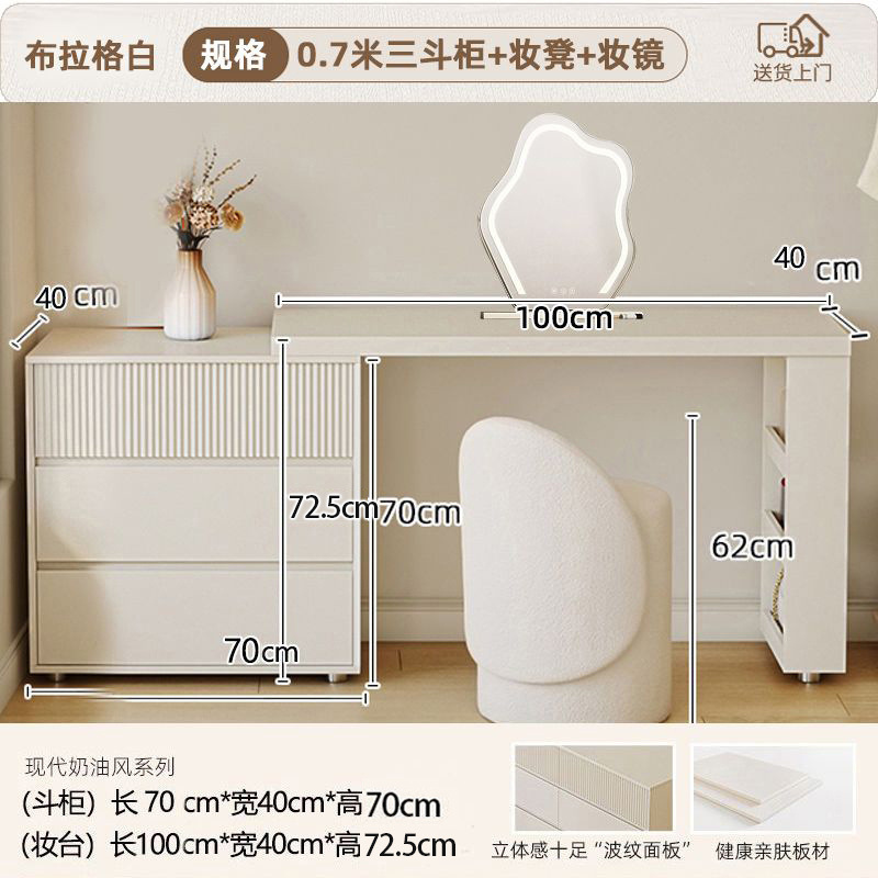 • 1.4m 화장대 + 서랍 3개 서랍장 + 거울 스툴 캐비닛