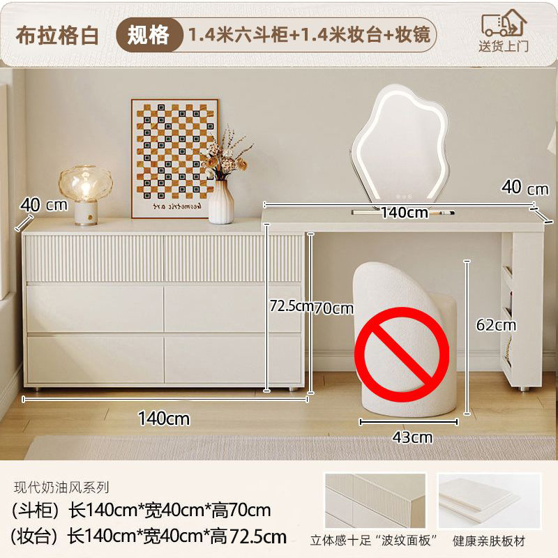 • 1.4m 화장대 + 서랍 6개 서랍장 + 캐비닛 + 스툴