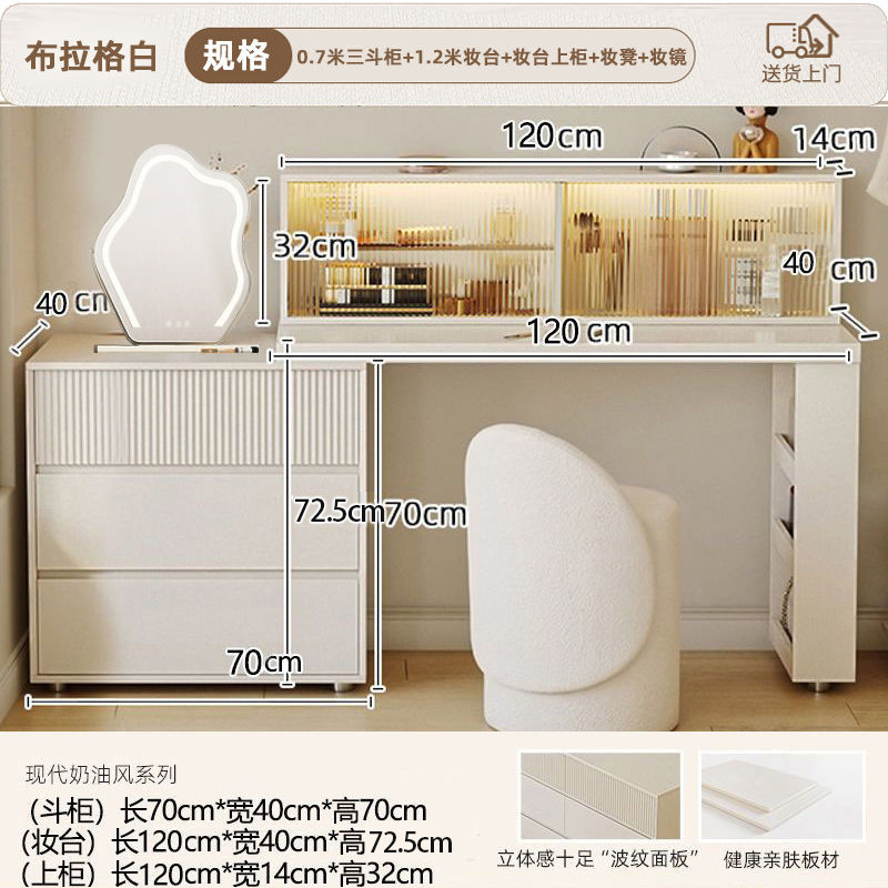 • 1.2m 화장대 + 서랍 3개 서랍장 + 거울 스툴 캐비닛