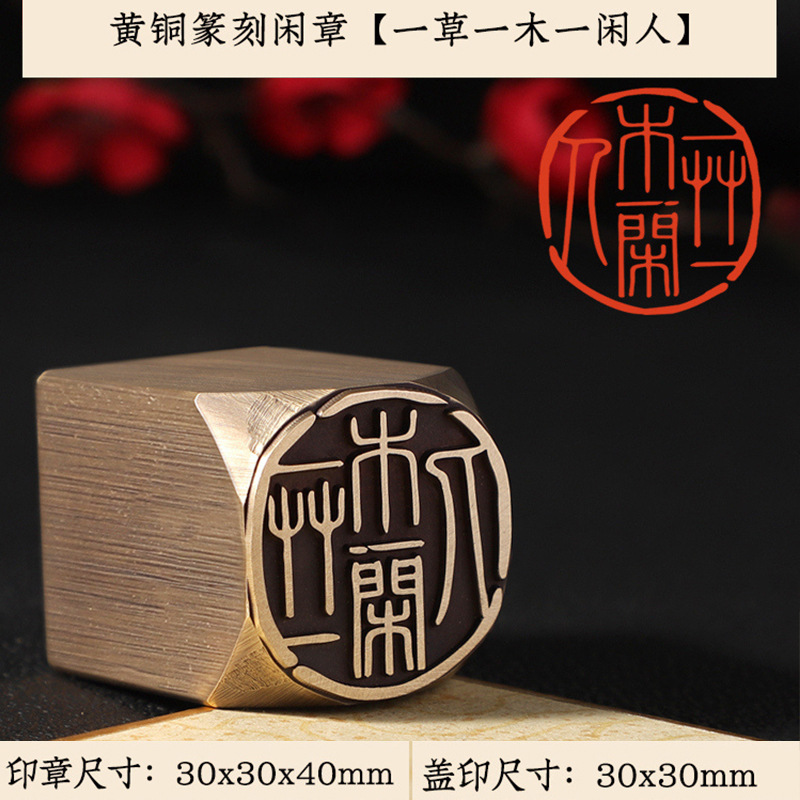 • 황동 여가장 30×30×40mm-QW-807 풀 한개, 나무 한개, 여가한 사람 [무료 팁백 + 잉크패드]