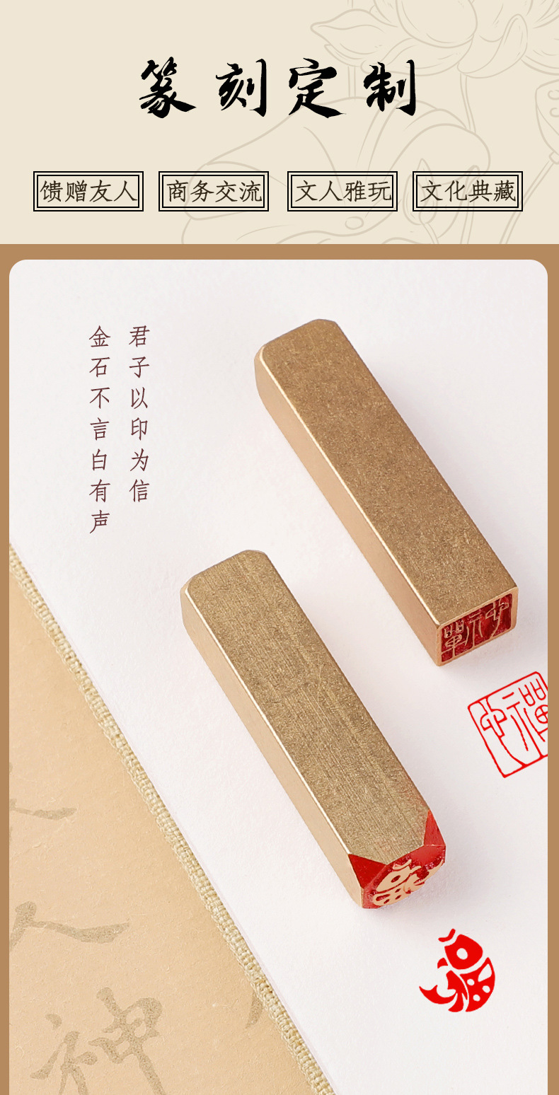 • 황동 여가 씰 25*25mm-KL-094 Fushou Kangning [무료 팁 백 + 잉크 패드]