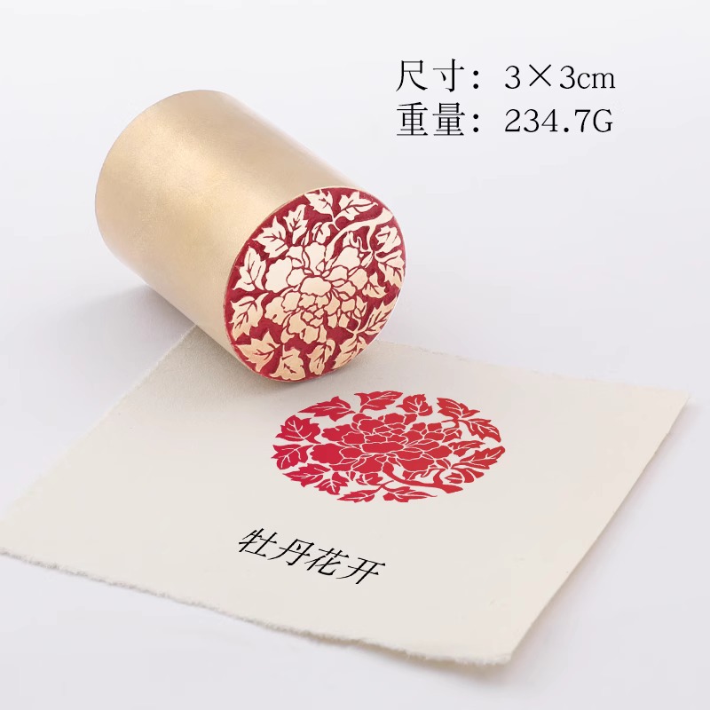• 황동 여가 스탬프 30*30mm-QW-844 모란꽃 [무료 팁백 + 잉크패드]