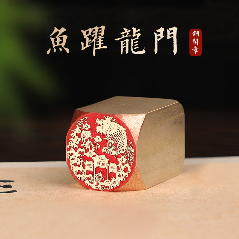 • 황동 레저 씰 25x25x40mm-QW-262 용문을 뛰어 넘는 물고기 [무료 팁 가방 + 잉크 패드]