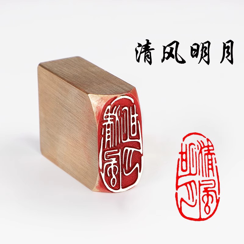 • 황동 레저 씰 15*30mm-A107 Qingfeng Mingyue [구리 평면 씰에는 팁 백 + 잉크 패드가 함께 제공됩니다]