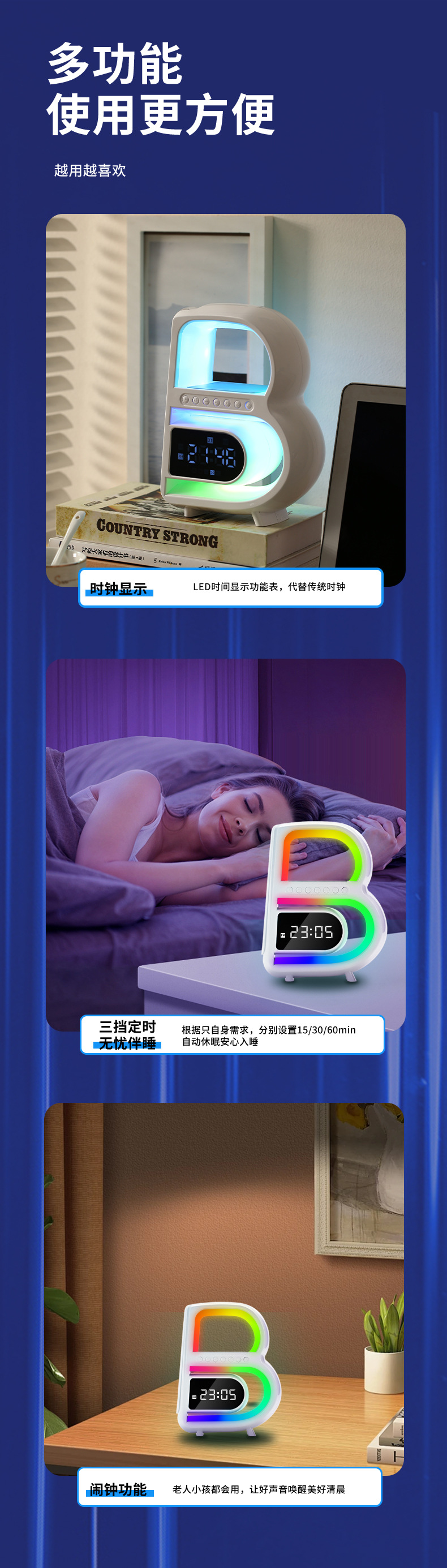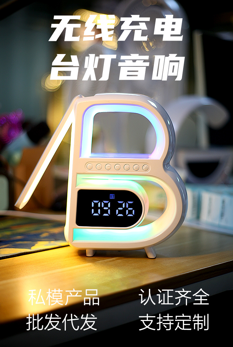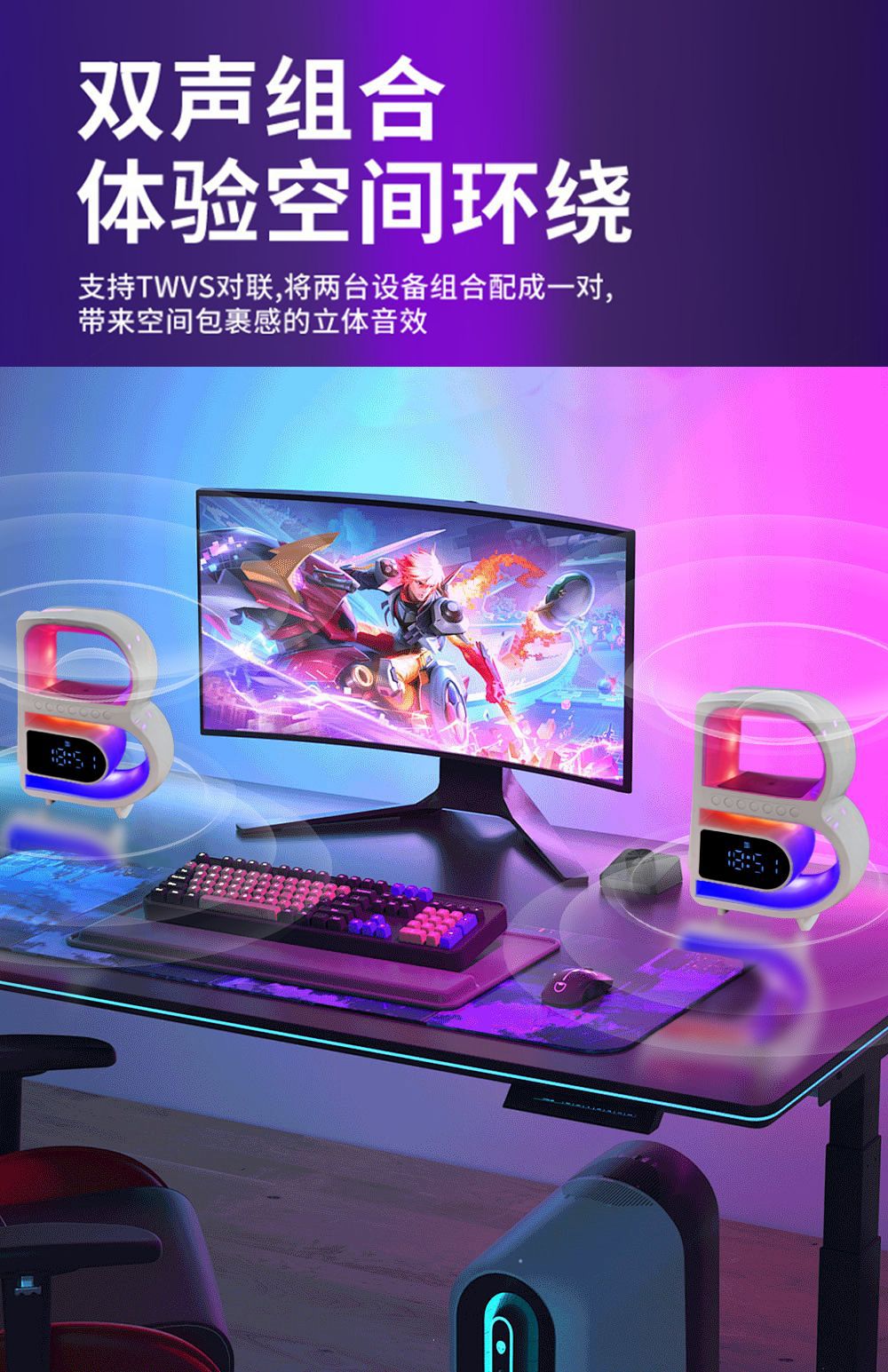 2025 새로운 빅 B 블루투스 스피커 높은 컬러 값 무선 충전 시계 다채로운 분위기 빛 서브 우퍼 오디오