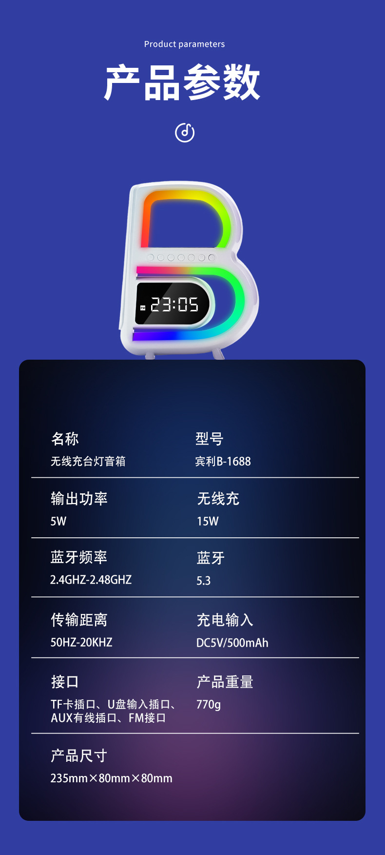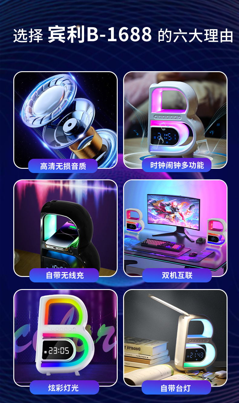 2025 새로운 빅 B 블루투스 스피커 높은 컬러 값 무선 충전 시계 다채로운 분위기 빛 서브 우퍼 오디오스토어 가기