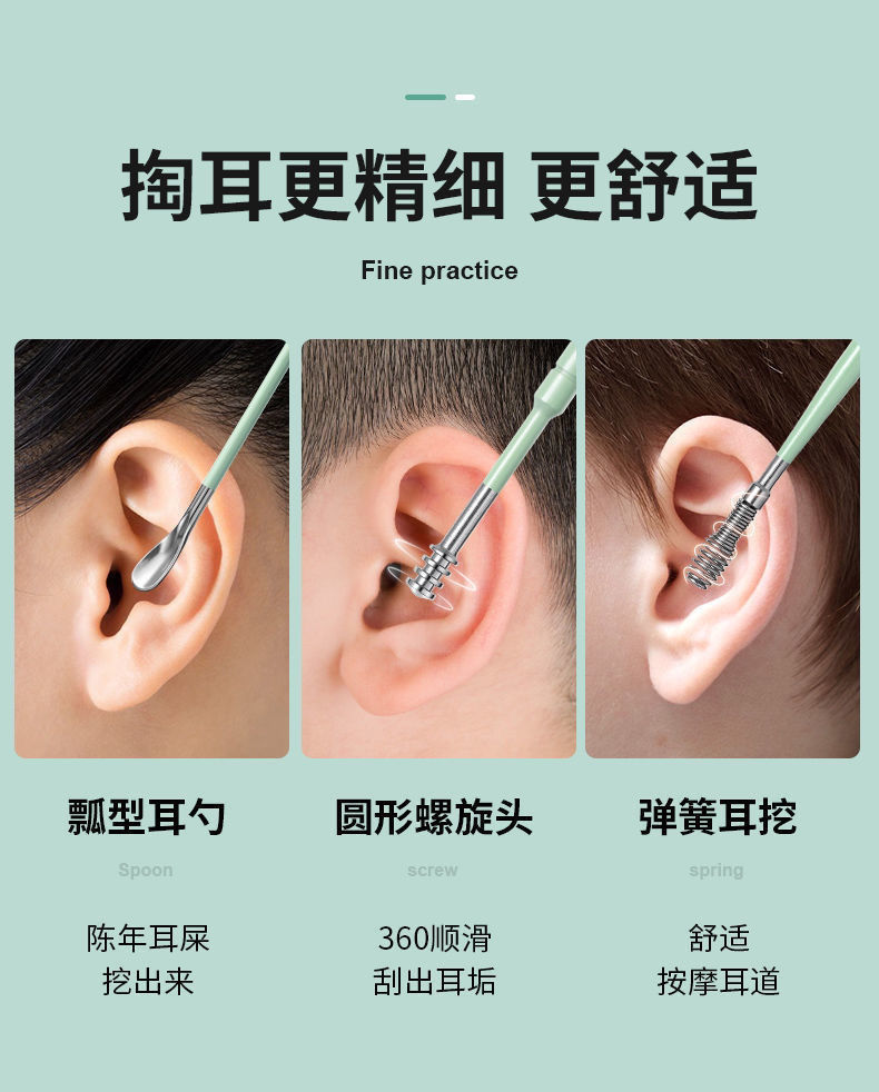 귀 따기 세트 신 귀 따기 아티팩트 가전제품 나선형 귀 따기 도구 성인 귀 파는 숟가락 전문 버클