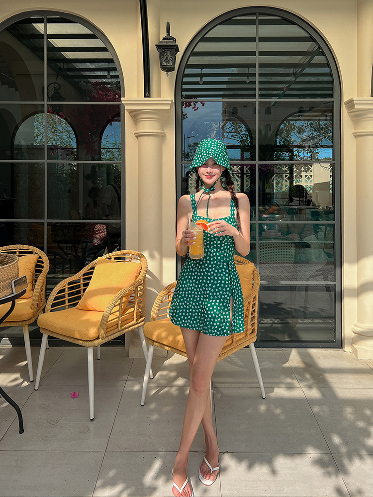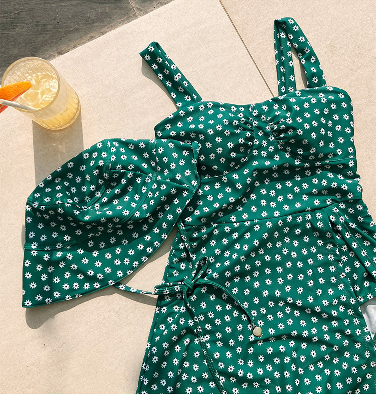 한국 새로운 더블 숄더 스트랩 섹시 백리스 벨리 커버 슬리밍 달콤한 꽃 원피스 수영복 여성용 모자스토어 가기