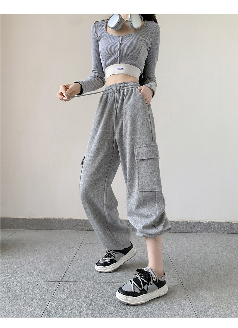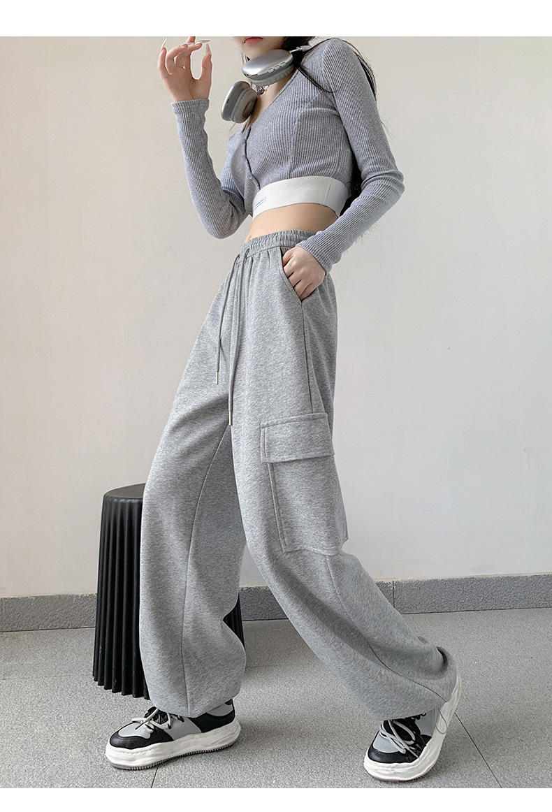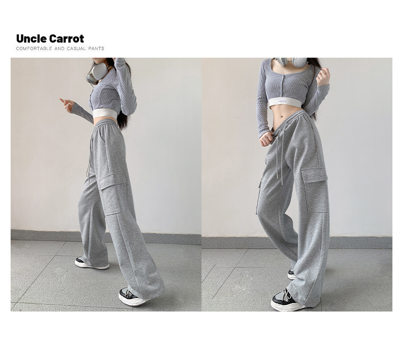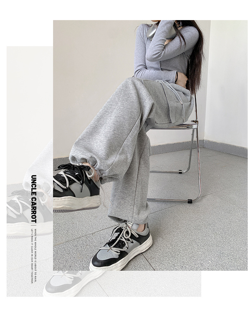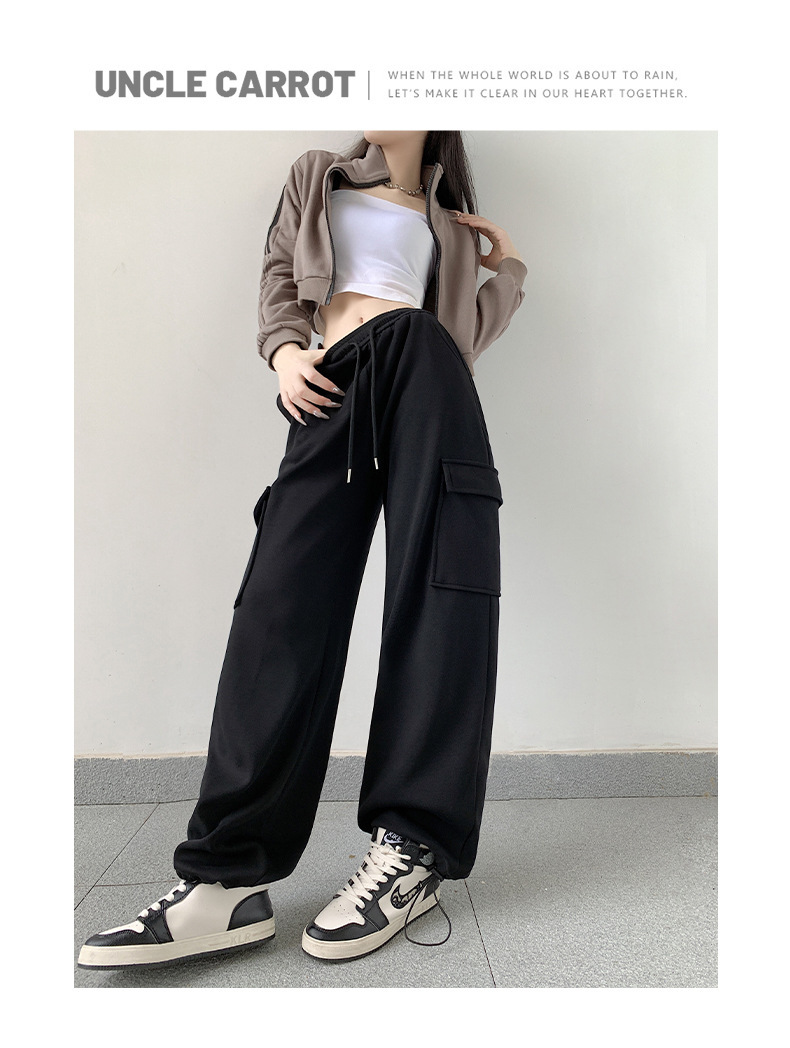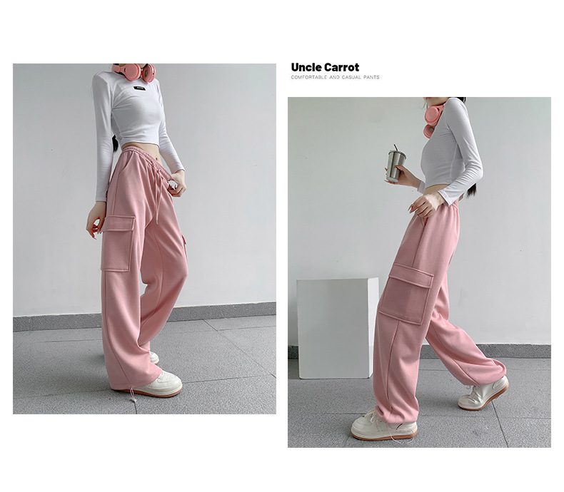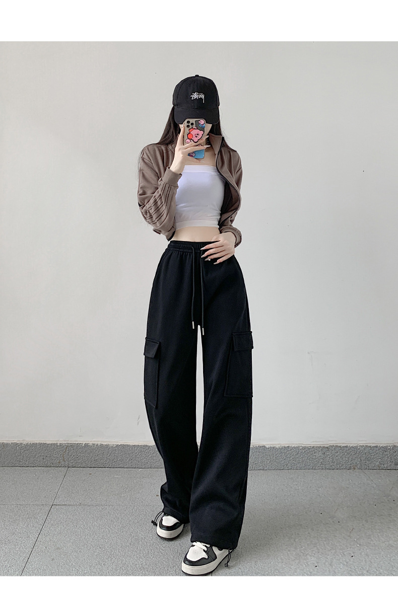 작업복 여성 2025 년 봄과 가을 새로운 도착 충전 느슨한 와이드 레그 바지 작은 캐주얼 스웨트 팬츠 여성용 등산 스포츠 바지스토어 가기