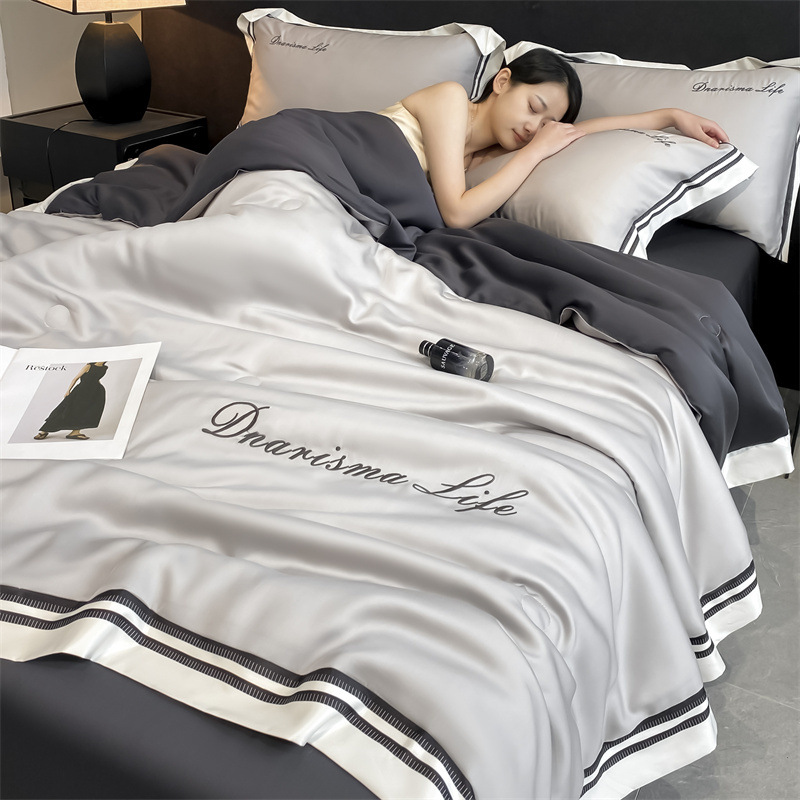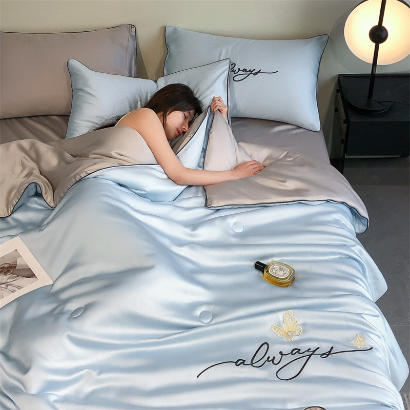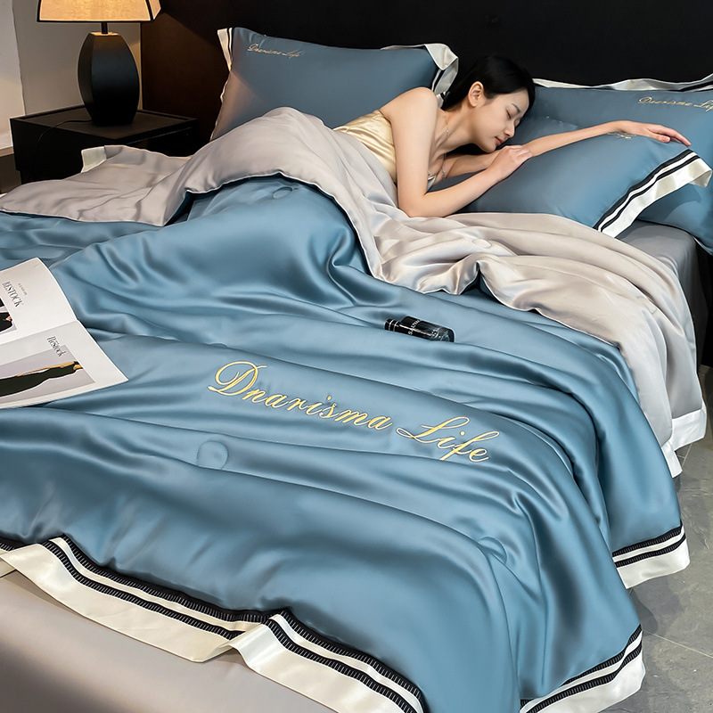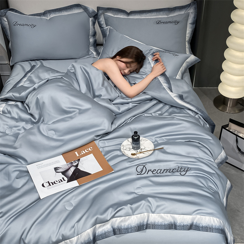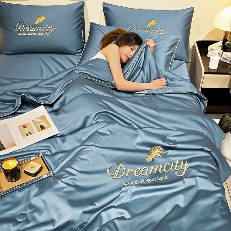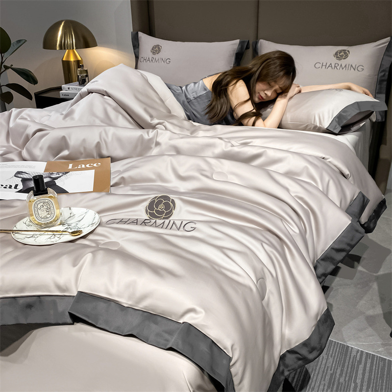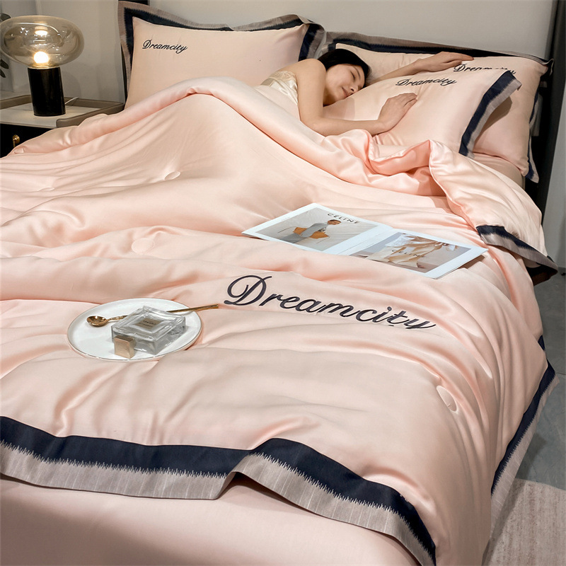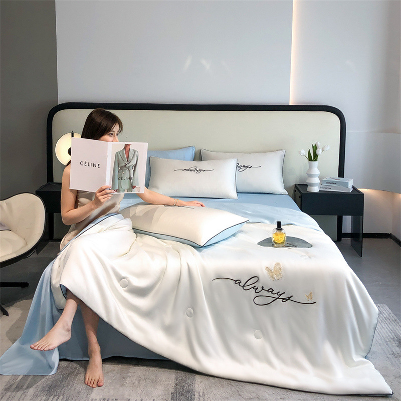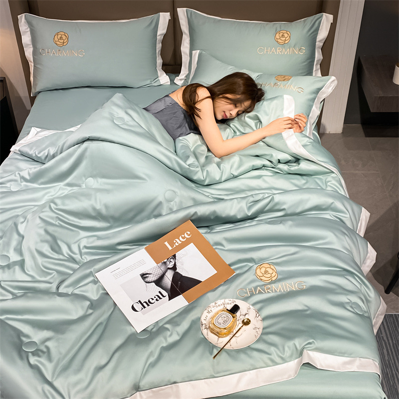 고급 텐셀 여름 쿨 퀼트 4 피스 에어컨 이불 4 피스 여름 얇은 이불 침구 세탁기