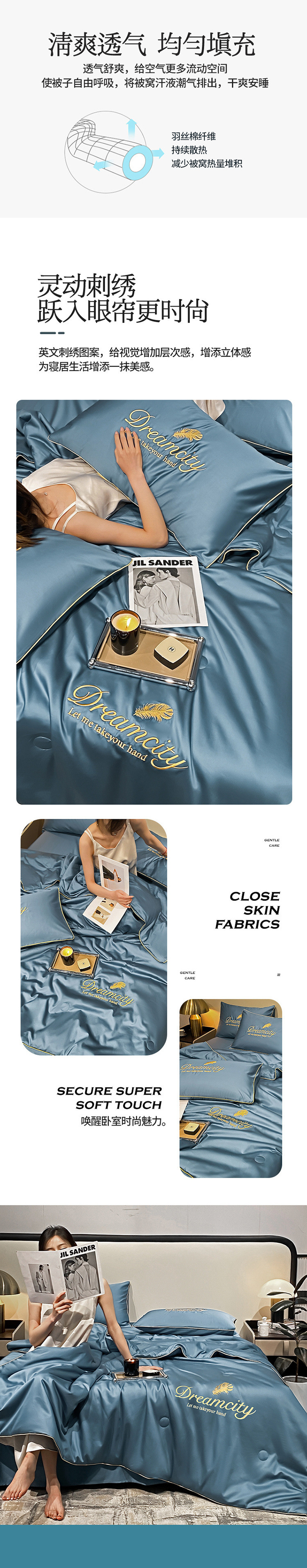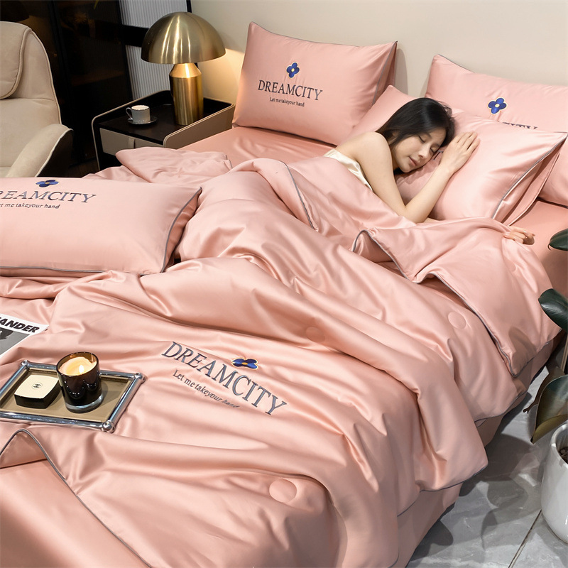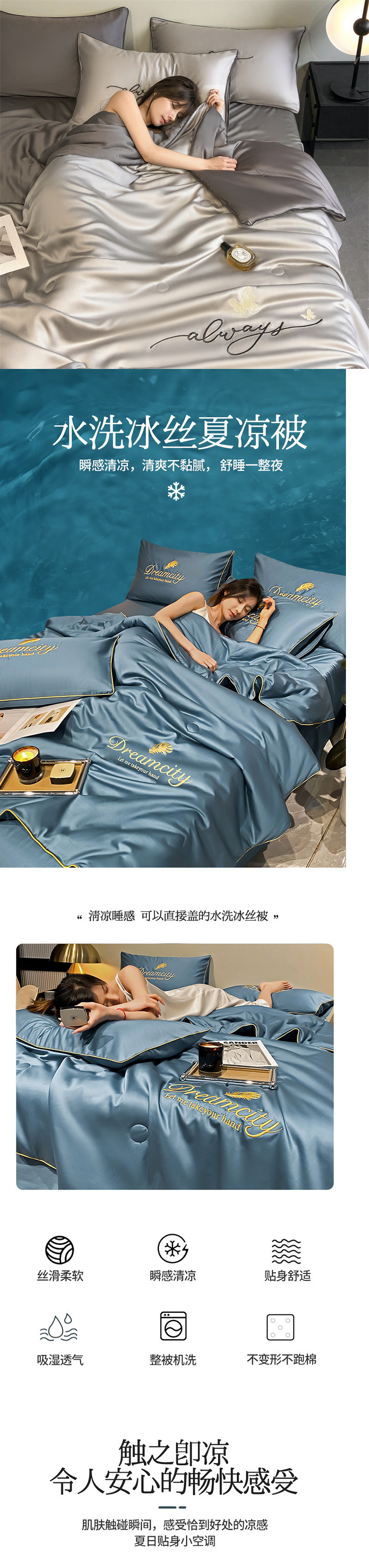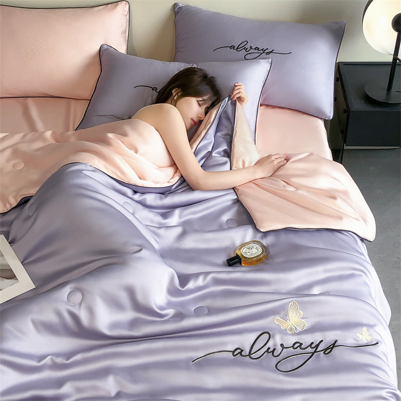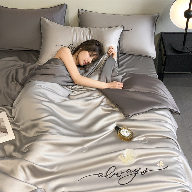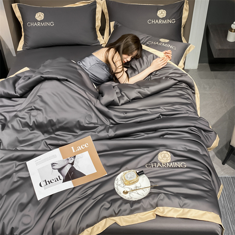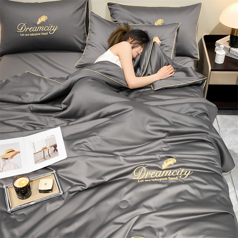 고급 텐셀 여름 쿨 퀼트 4 피스 에어컨 이불 4 피스 여름 얇은 이불 침구 세탁기