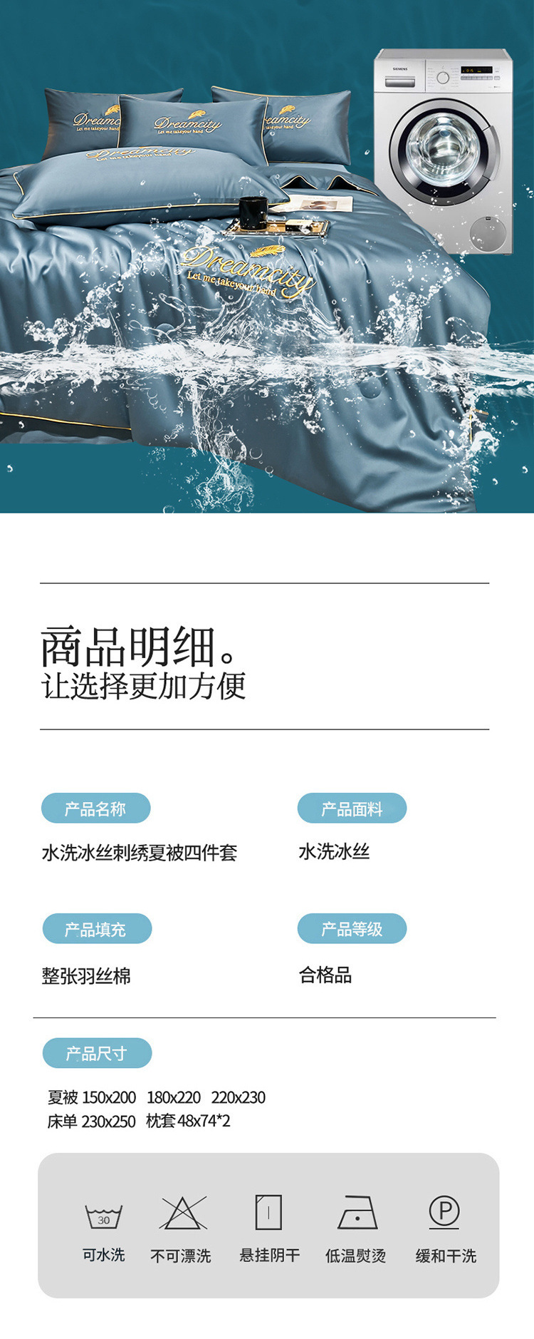 고급 텐셀 여름 쿨 퀼트 4 피스 에어컨 이불 4 피스 여름 얇은 이불 침구 세탁기스토어 가기