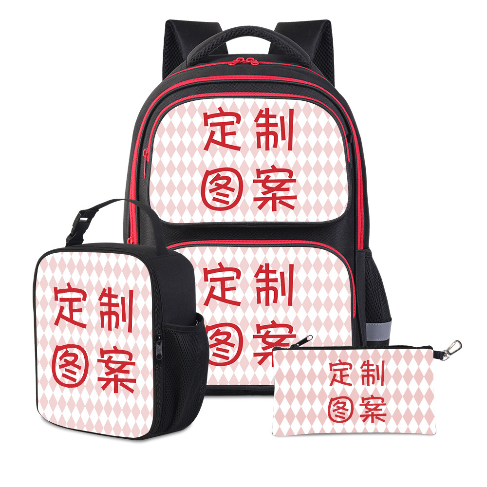 2025炫酷学生书包多功能涤纶上下口袋背包三件套 创意个性来图定制