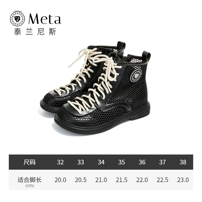 티라니스 메타 걸스 영국 스타일 부모-자식 부츠 부드러운 바닥 가죽 마틴 부츠 봄과 가을 새로운 성능 블랙 가죽 신발