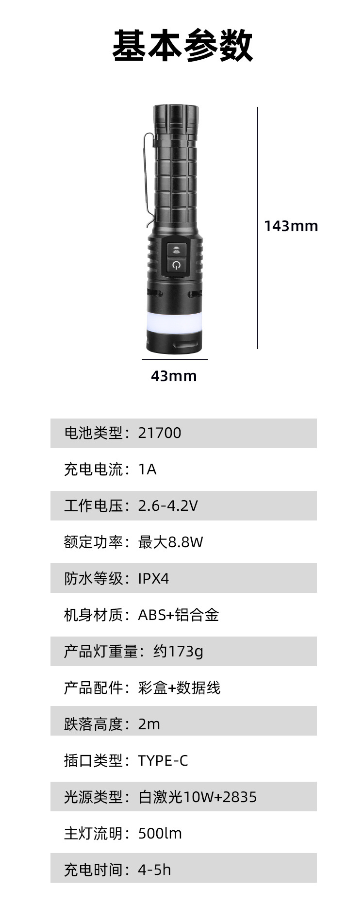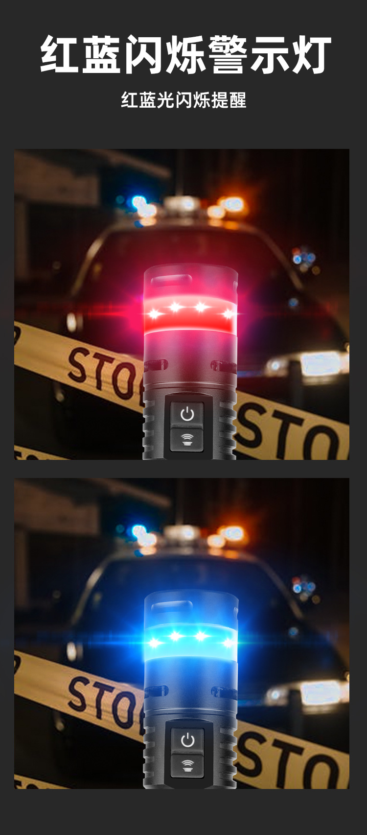 국경 새로운 야외 LED 슈퍼 밝은 손전등 빨간색과 파란색 경고 작업 조명 편리한 다기능 경보 손전등