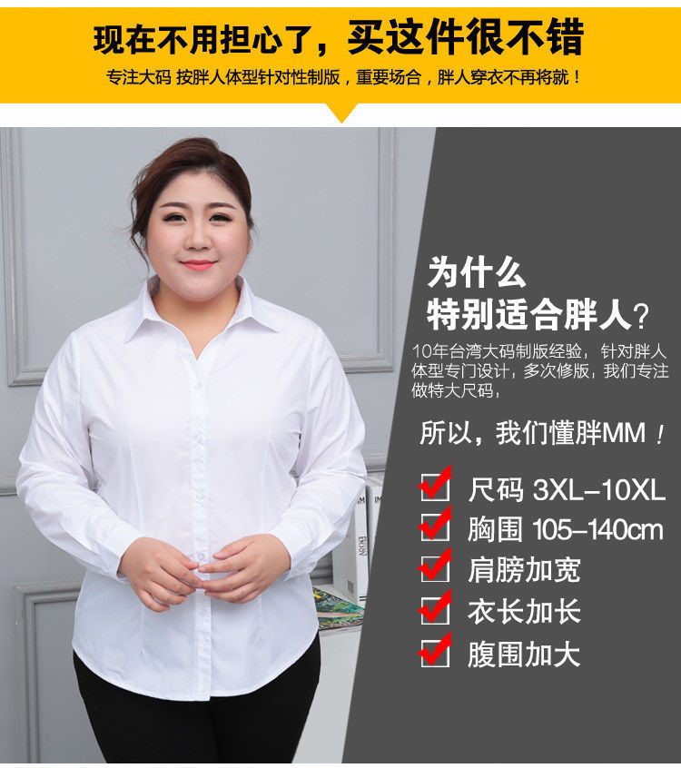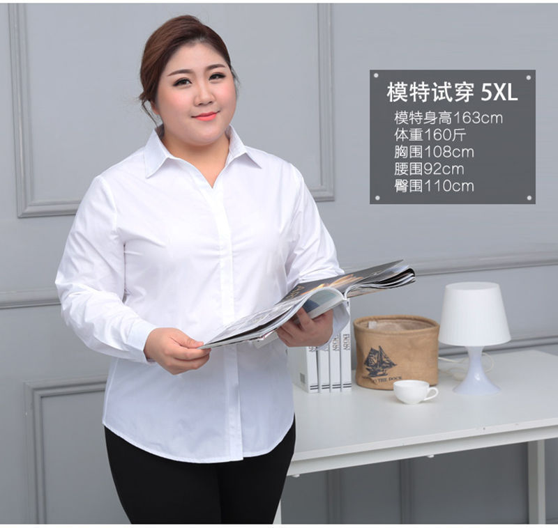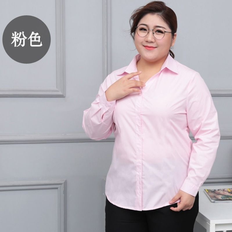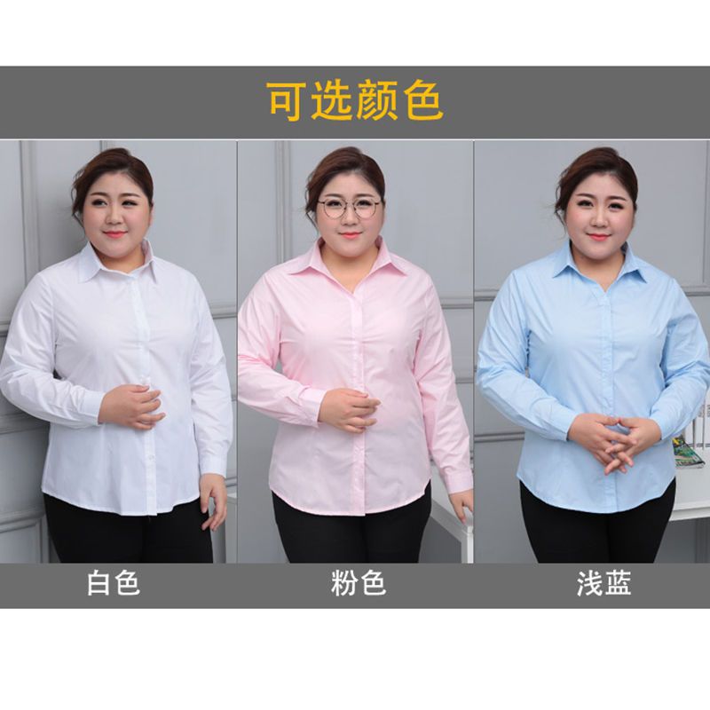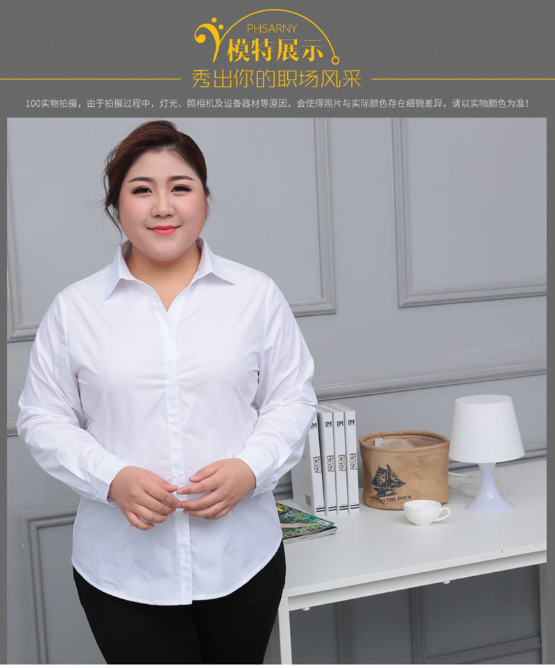 봄 새 통통녀 플러스 사이즈 흰색 셔츠 여성용 긴 소매 및 뚱뚱한 느슨한 200kg 비즈니스 복장 바지스토어 가기