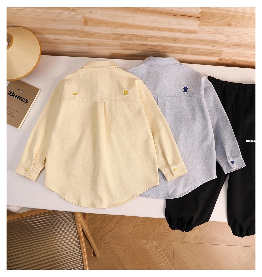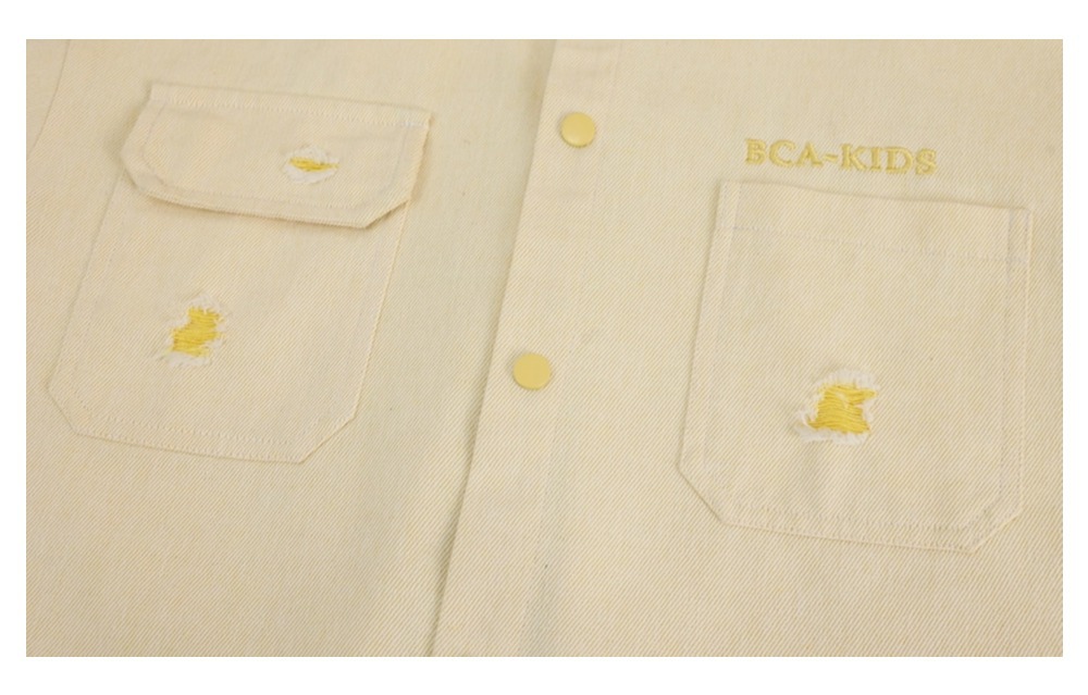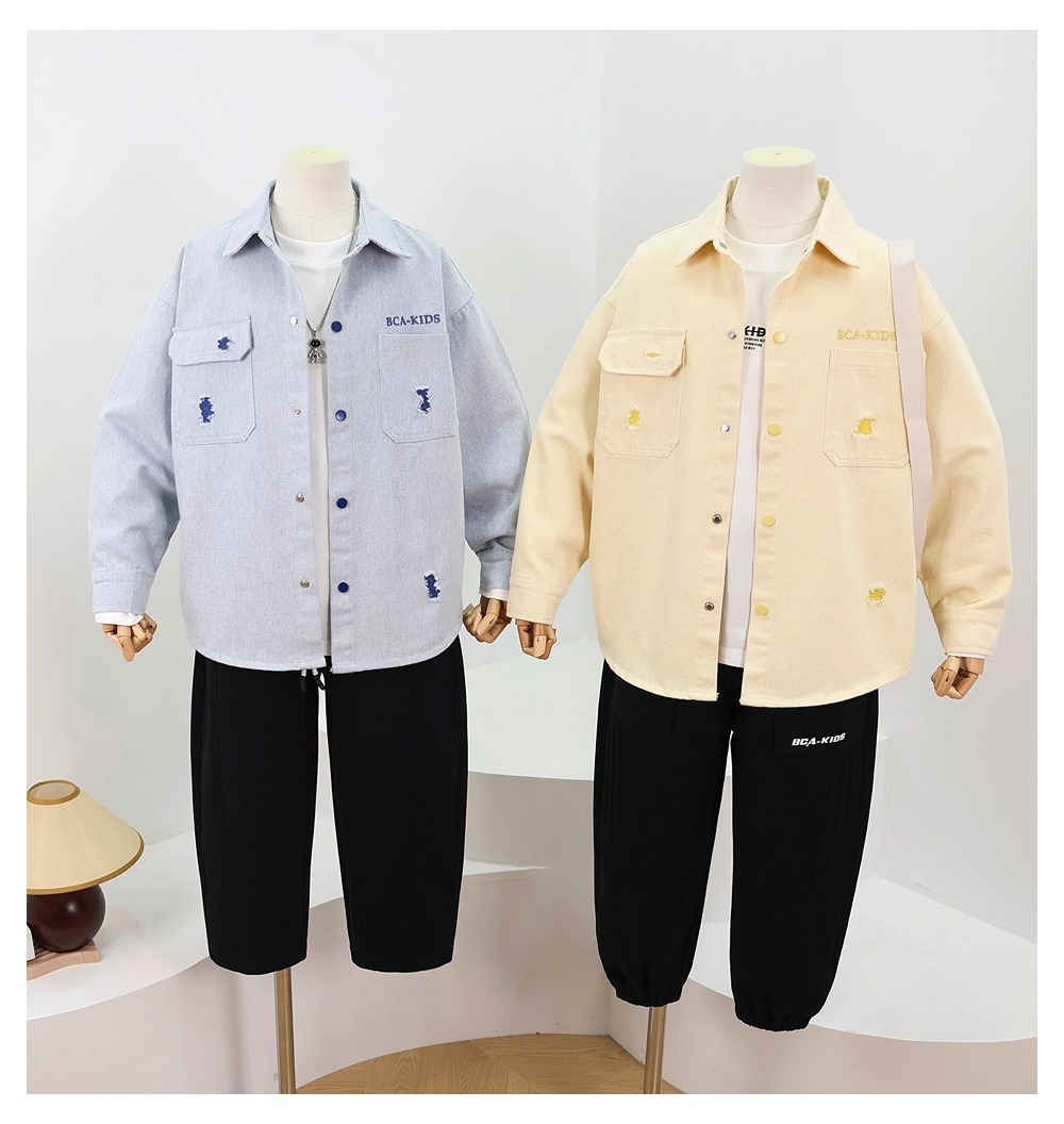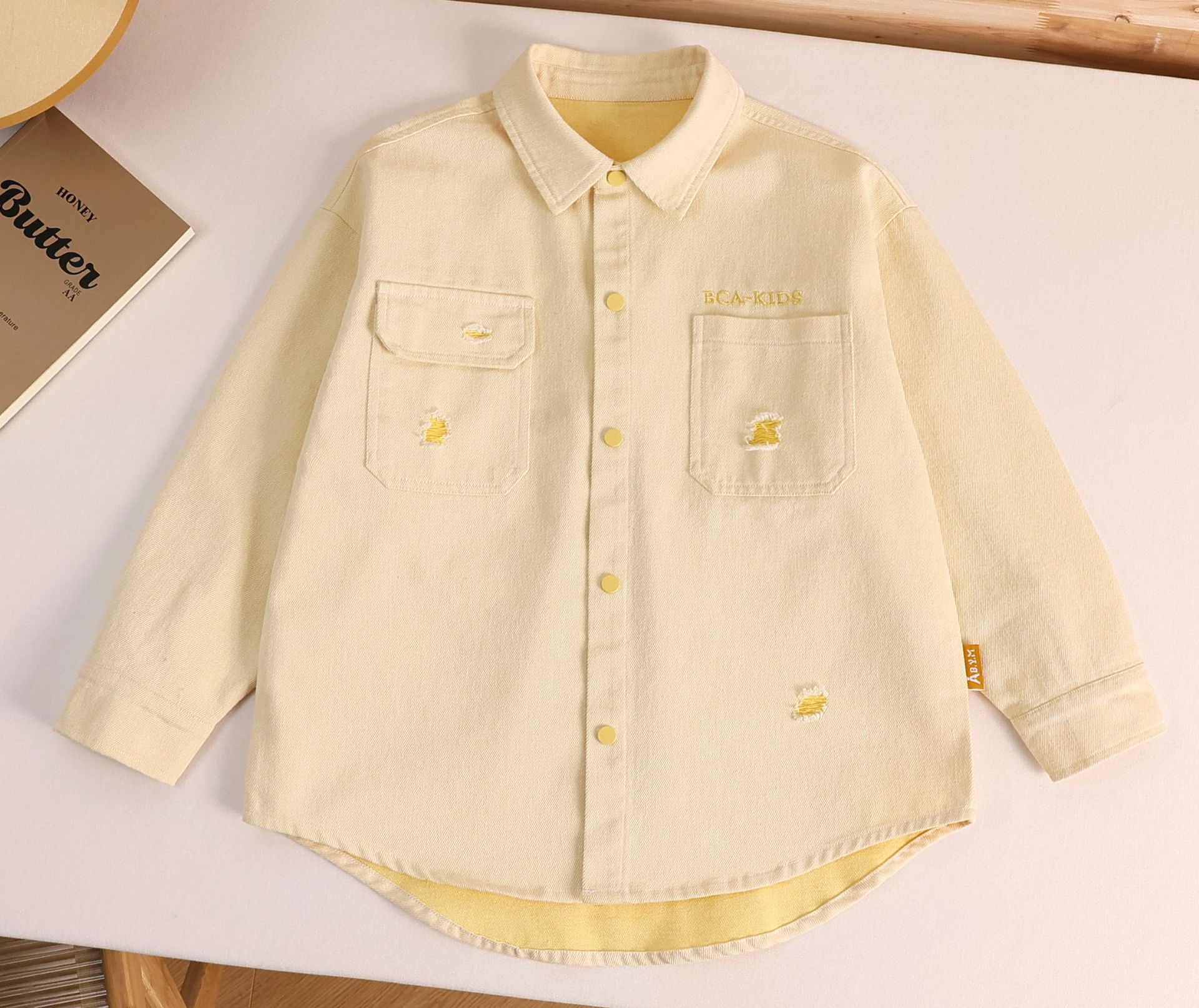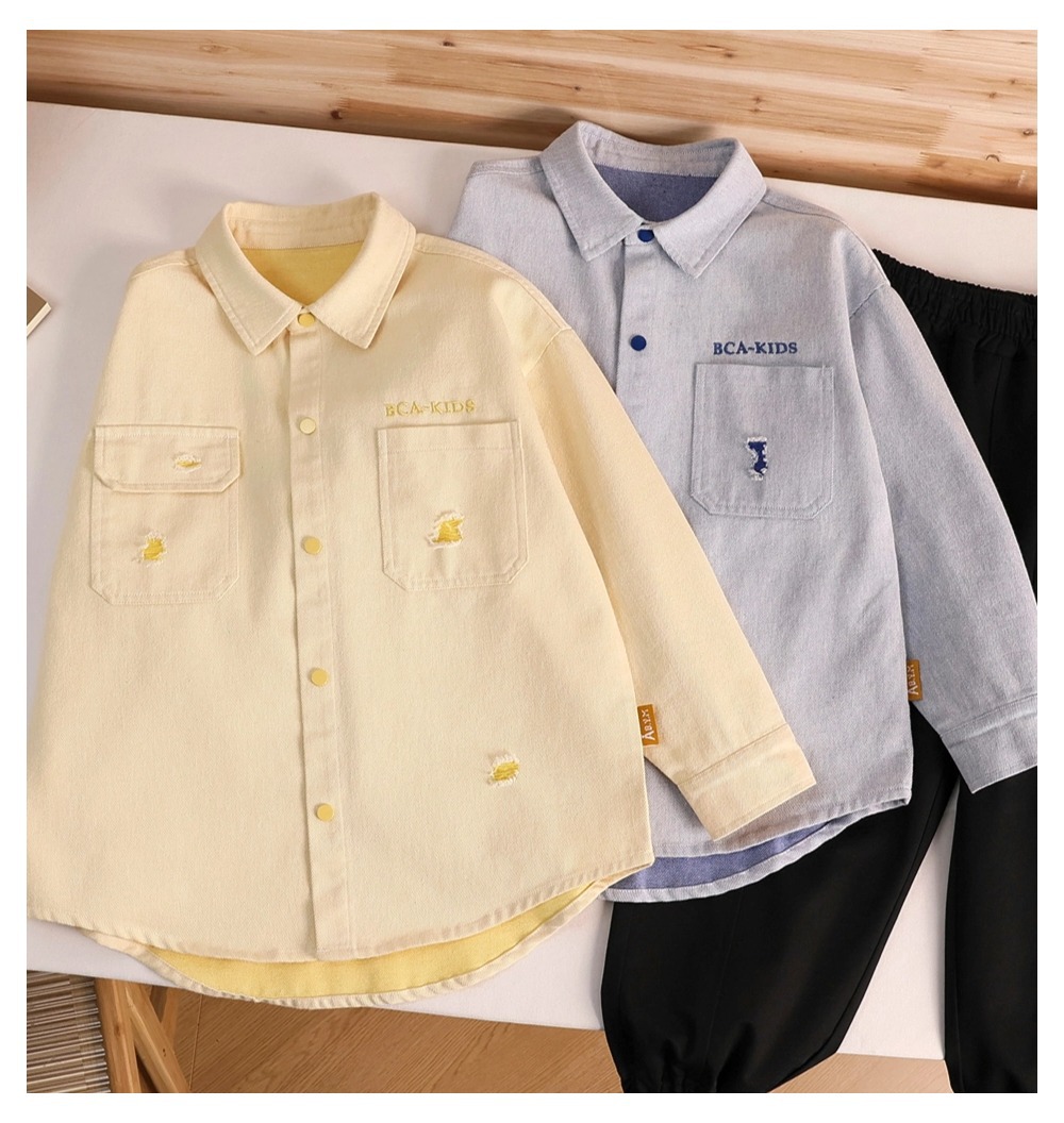 남아용 봄 데님 셔츠 데미지 디자인 2025 신상 아동 패션 데님 셔츠 자켓 중대형 아동용 상의 트렌디스토어 가기