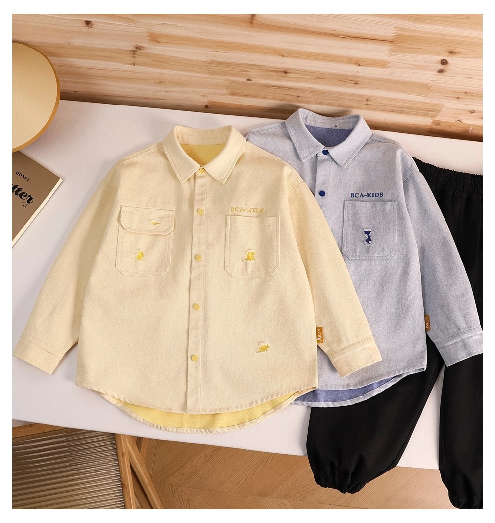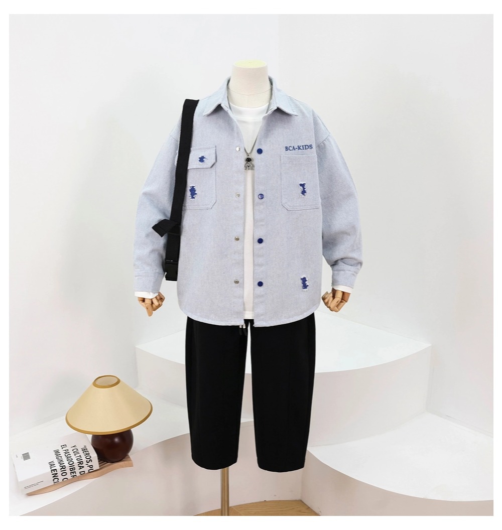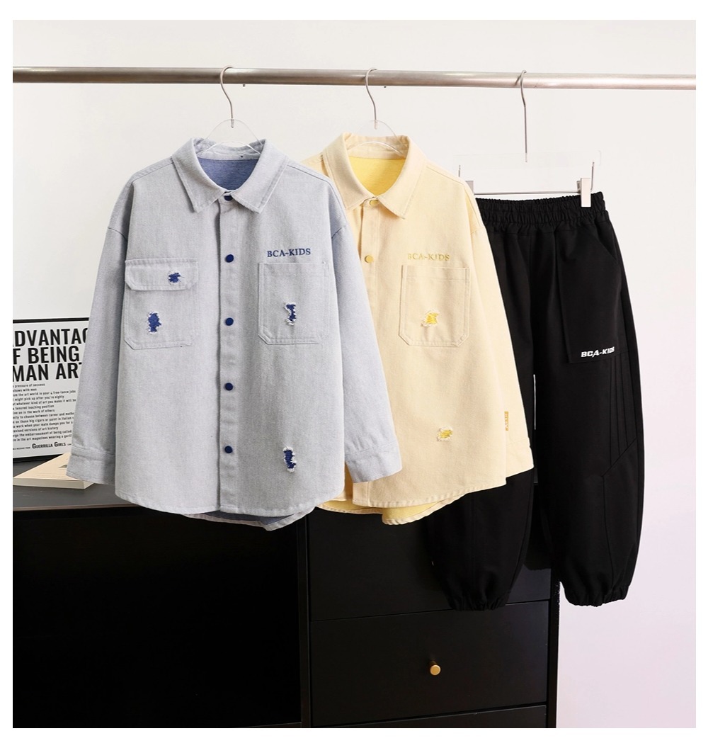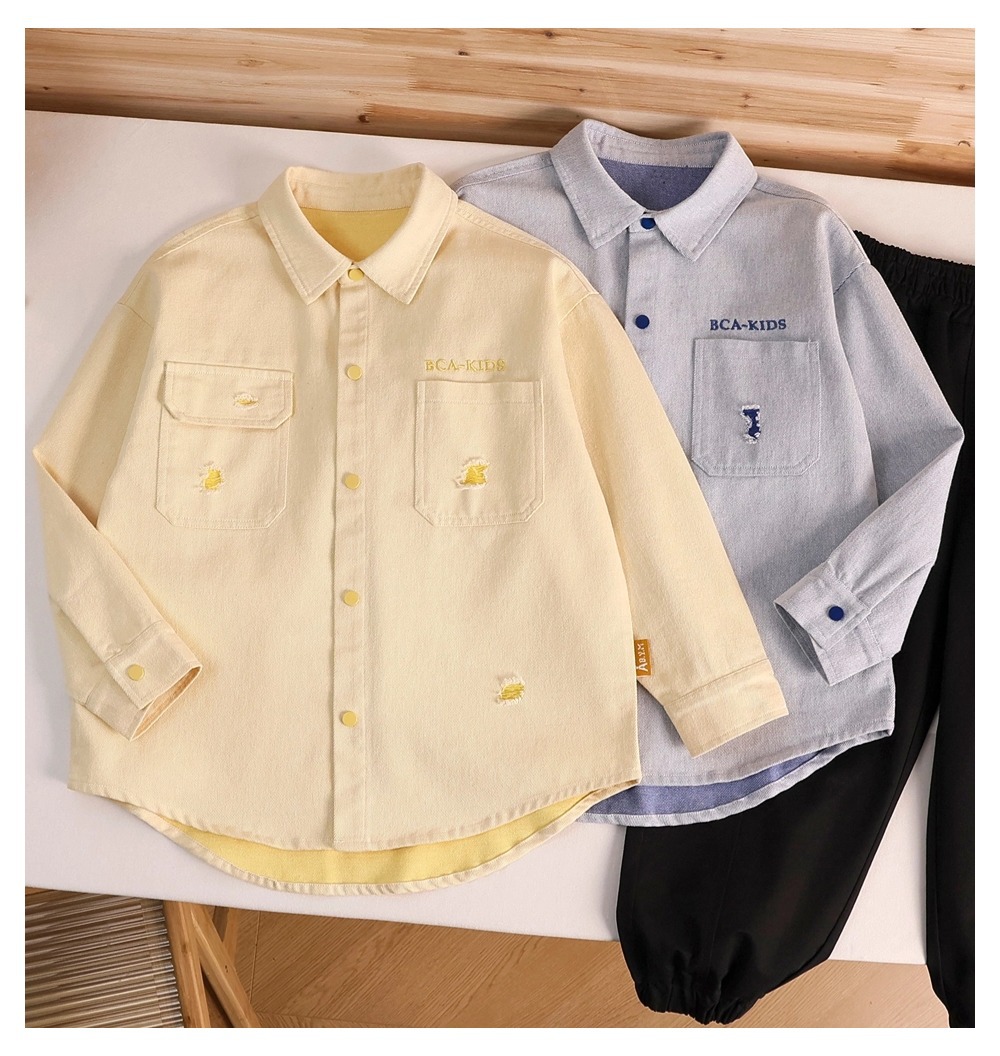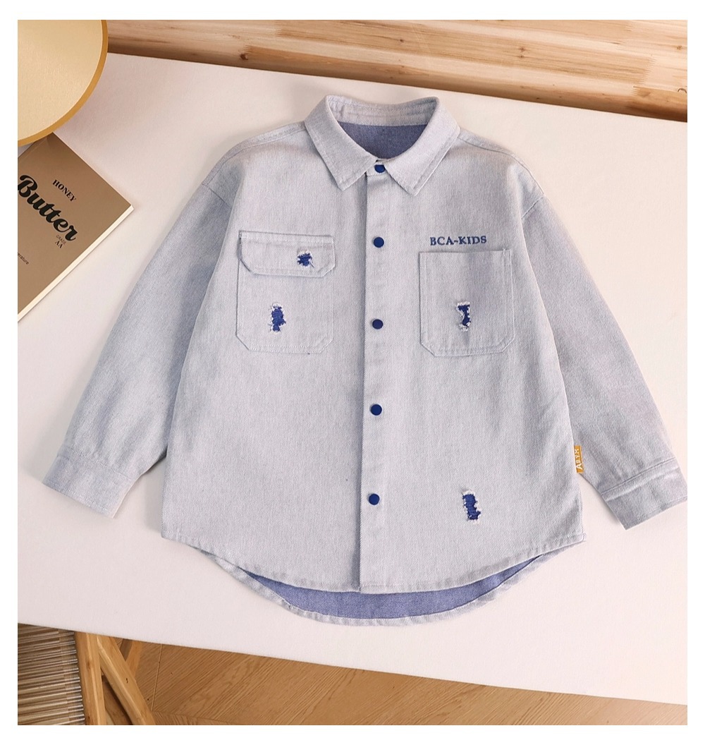 남아용 봄 데님 셔츠 데미지 디자인 2025 신상 아동 패션 데님 셔츠 자켓 중대형 아동용 상의 트렌디