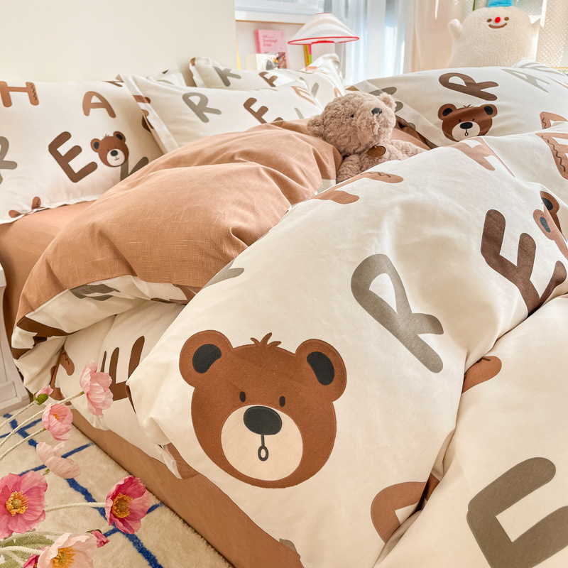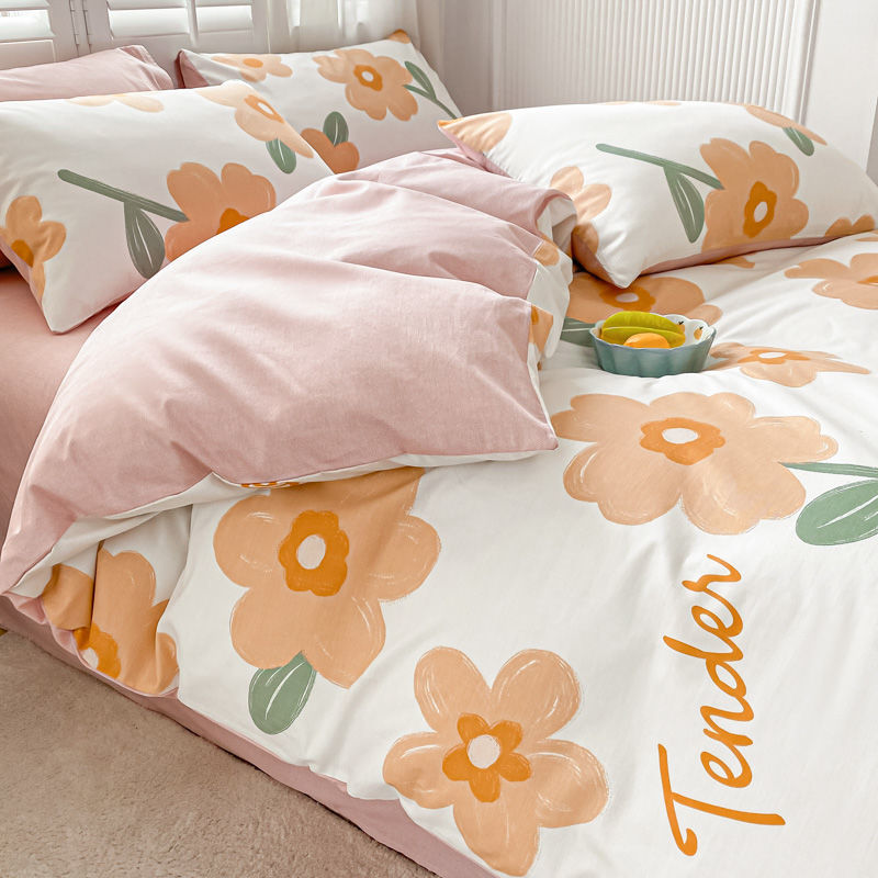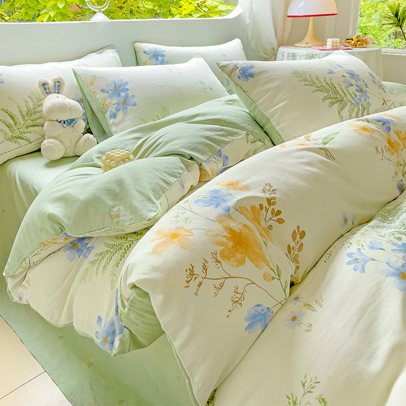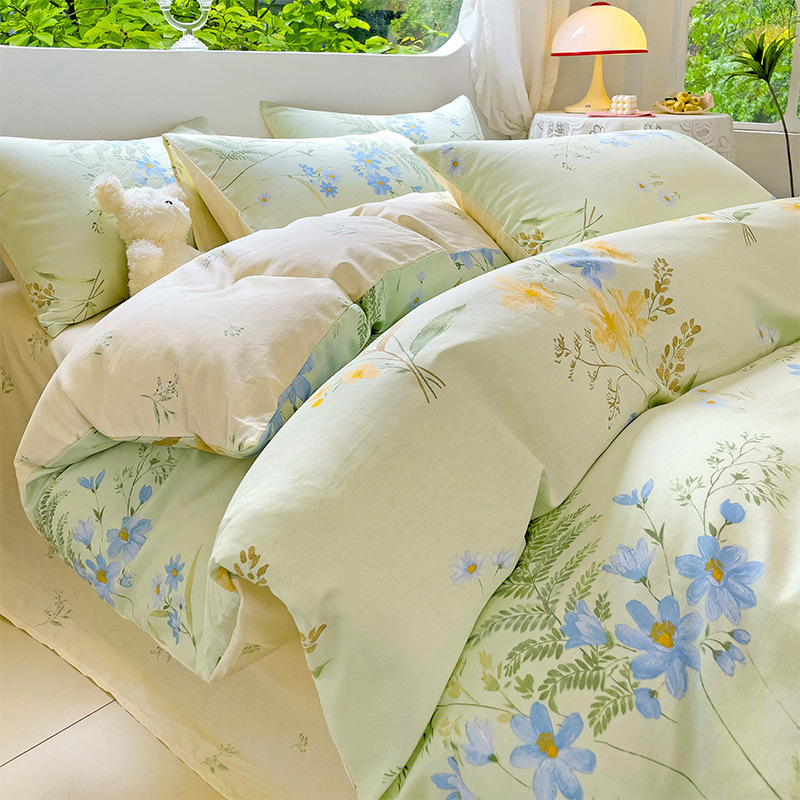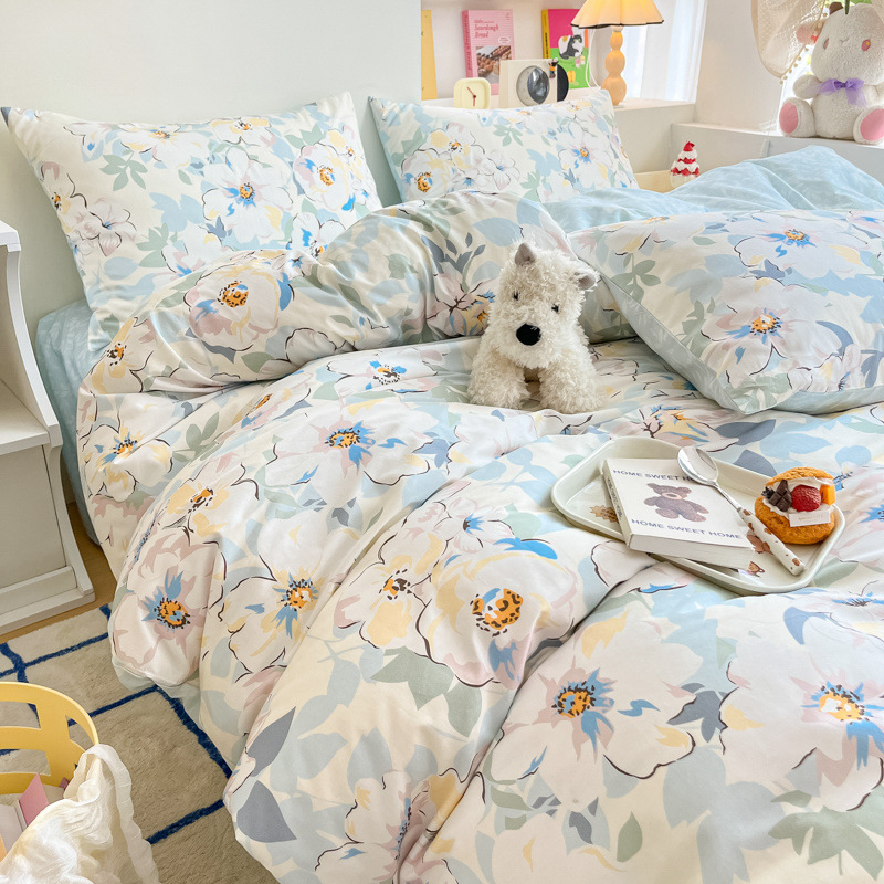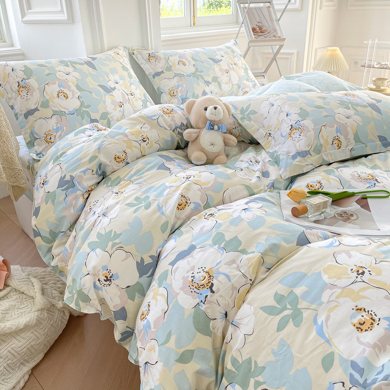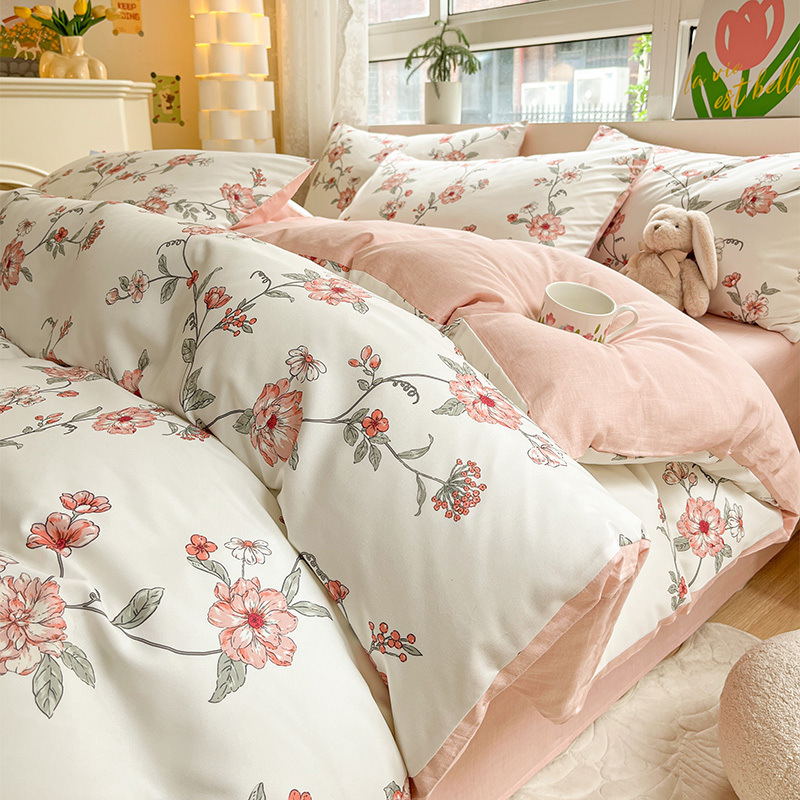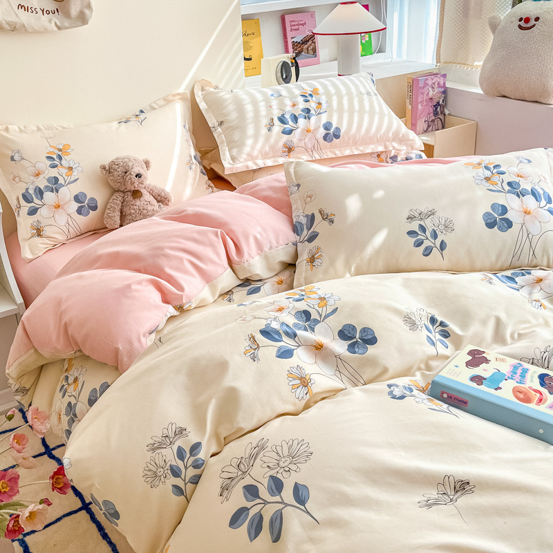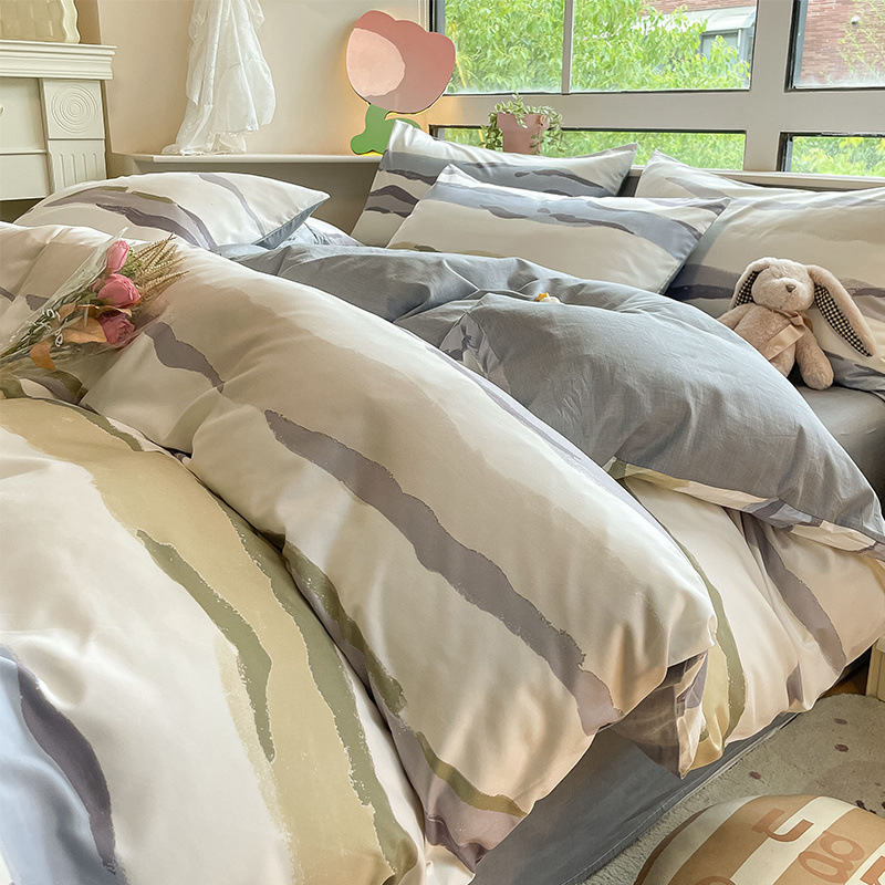 2025 새로운 스타일 면 4 피스 세트 100 모든 면 이불 커버 모든 면 침대 시트 퀼트 커버 기숙사 용 3 피스 침구스토어 가기