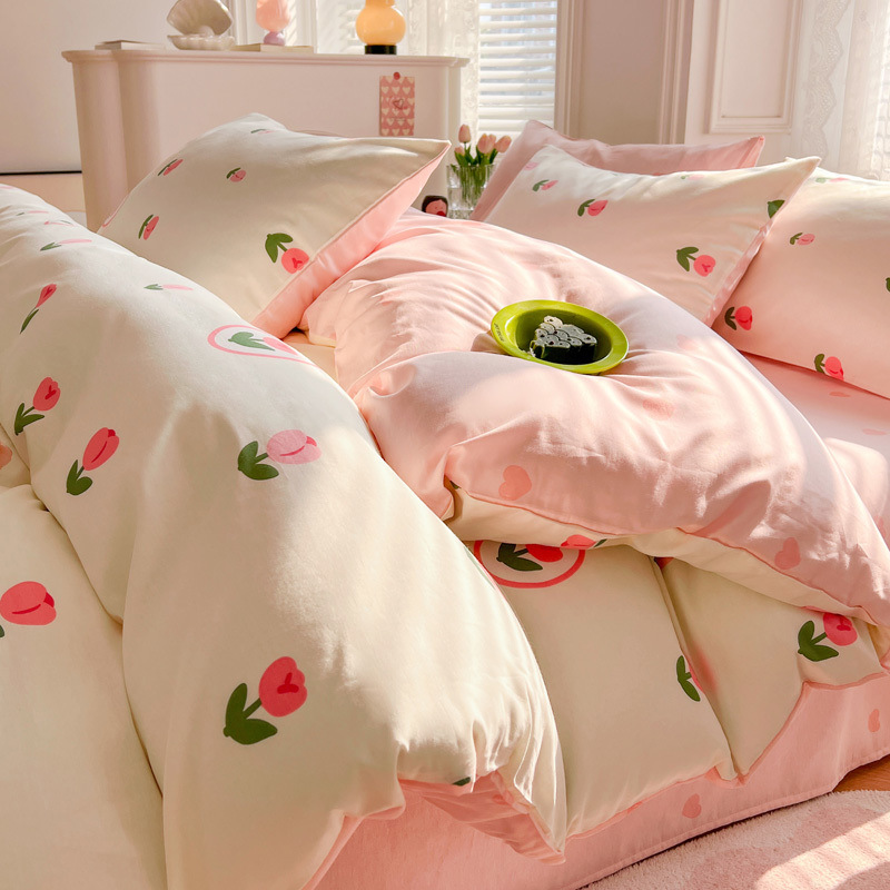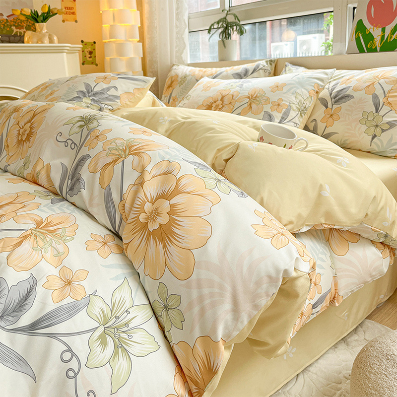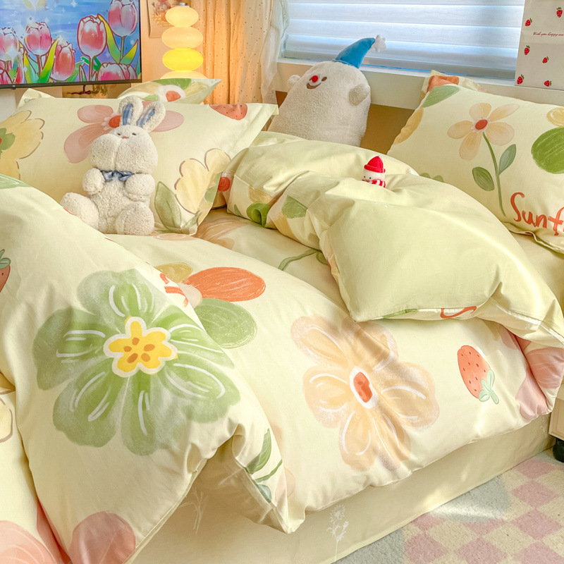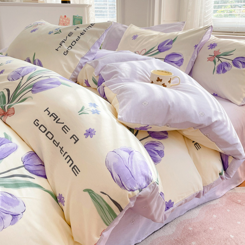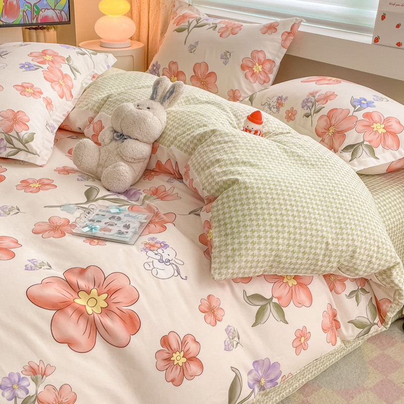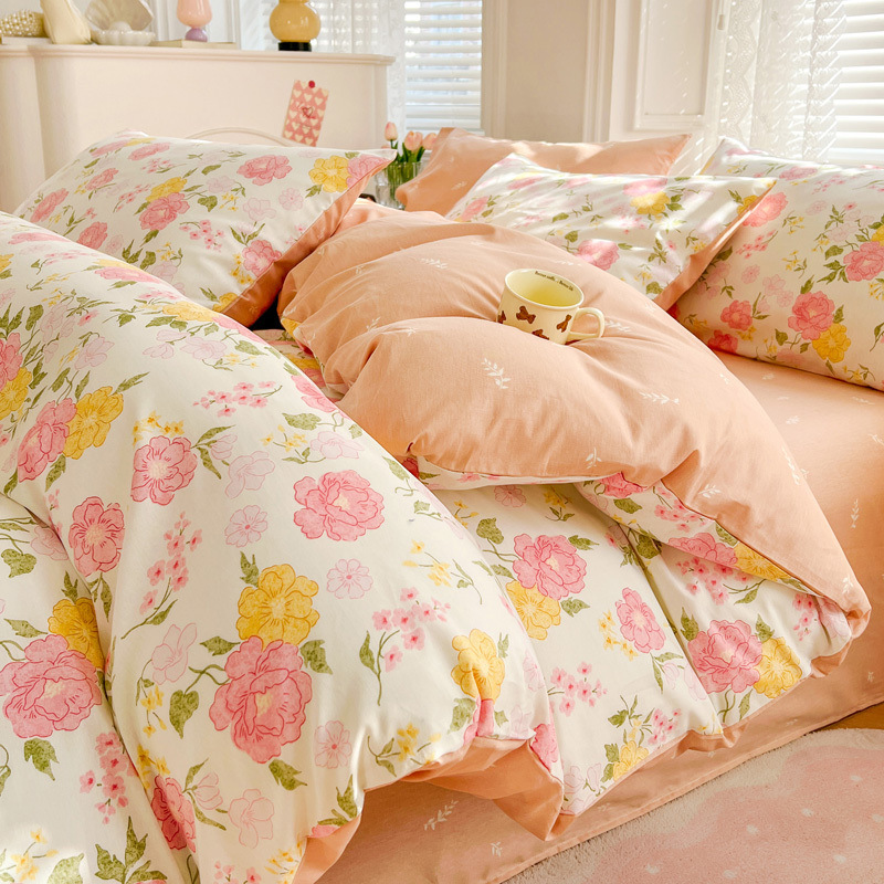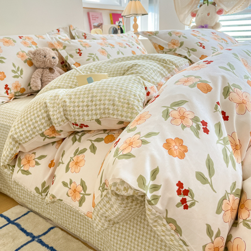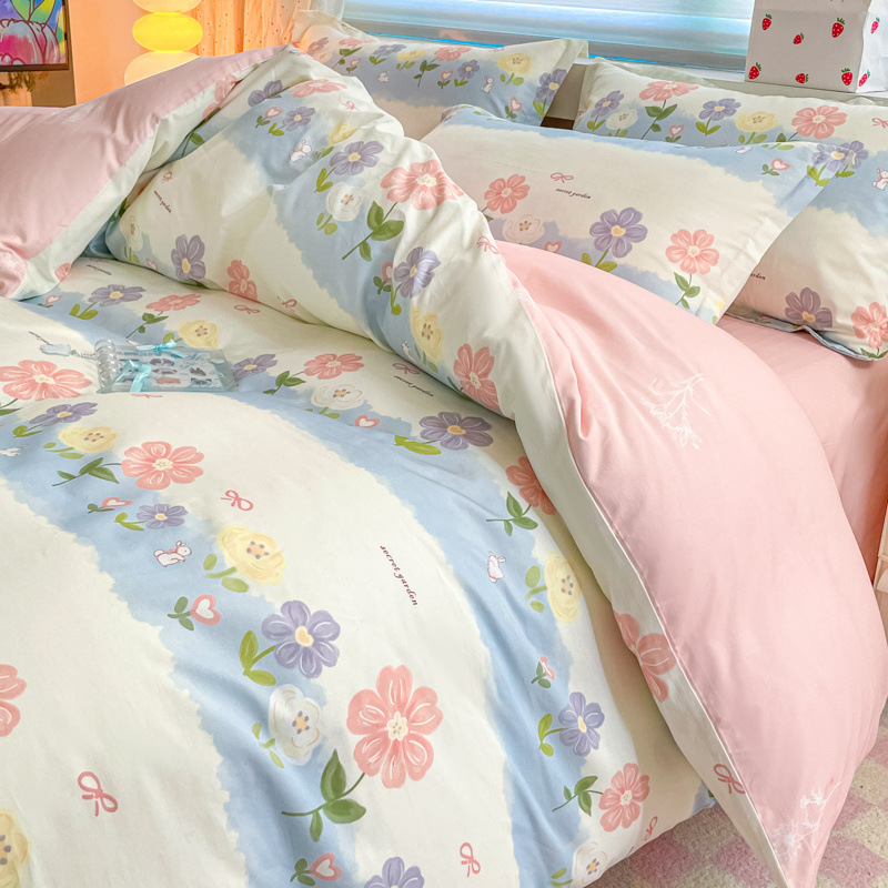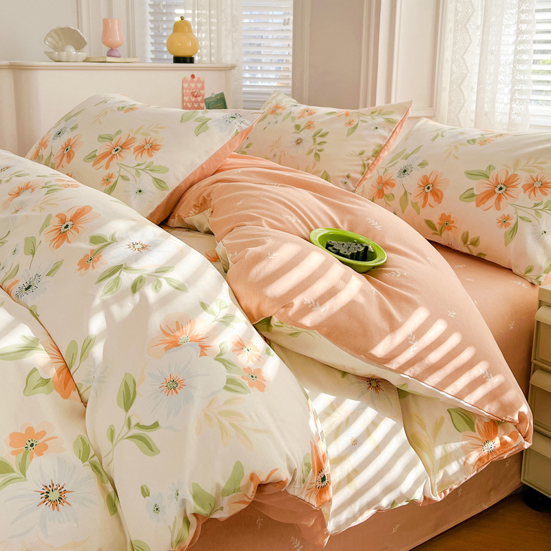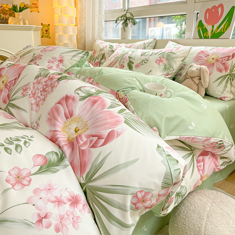 2025 새로운 스타일 면 4 피스 세트 100 모든 면 이불 커버 모든 면 침대 시트 퀼트 커버 기숙사 용 3 피스 침구스토어 가기