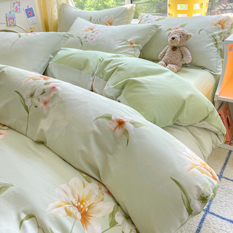 2025 새로운 스타일 면 4 피스 세트 100 모든 면 이불 커버 모든 면 침대 시트 퀼트 커버 기숙사 용 3 피스 침구