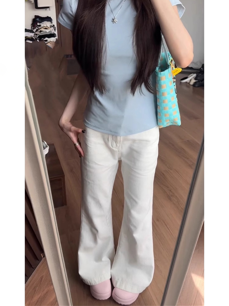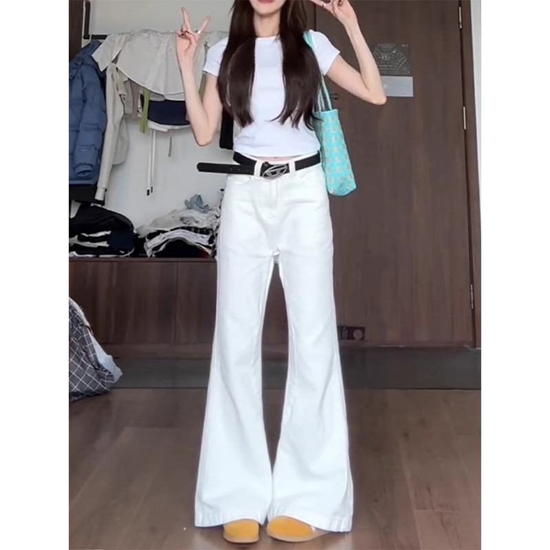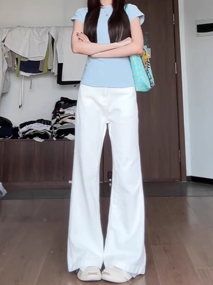 흰색 Slimless 청바지 여성의 봄 새로운 디자인 감각 느슨한 넓은 다리 슬림 스트레이트 트럼펫 바지스토어 가기