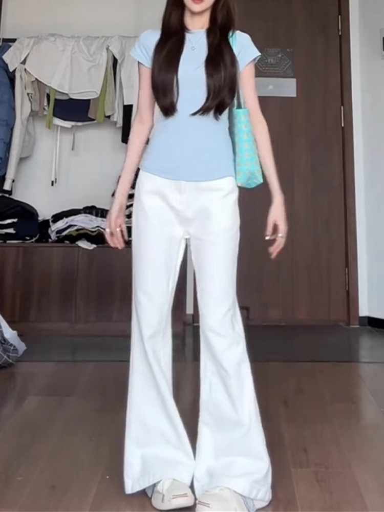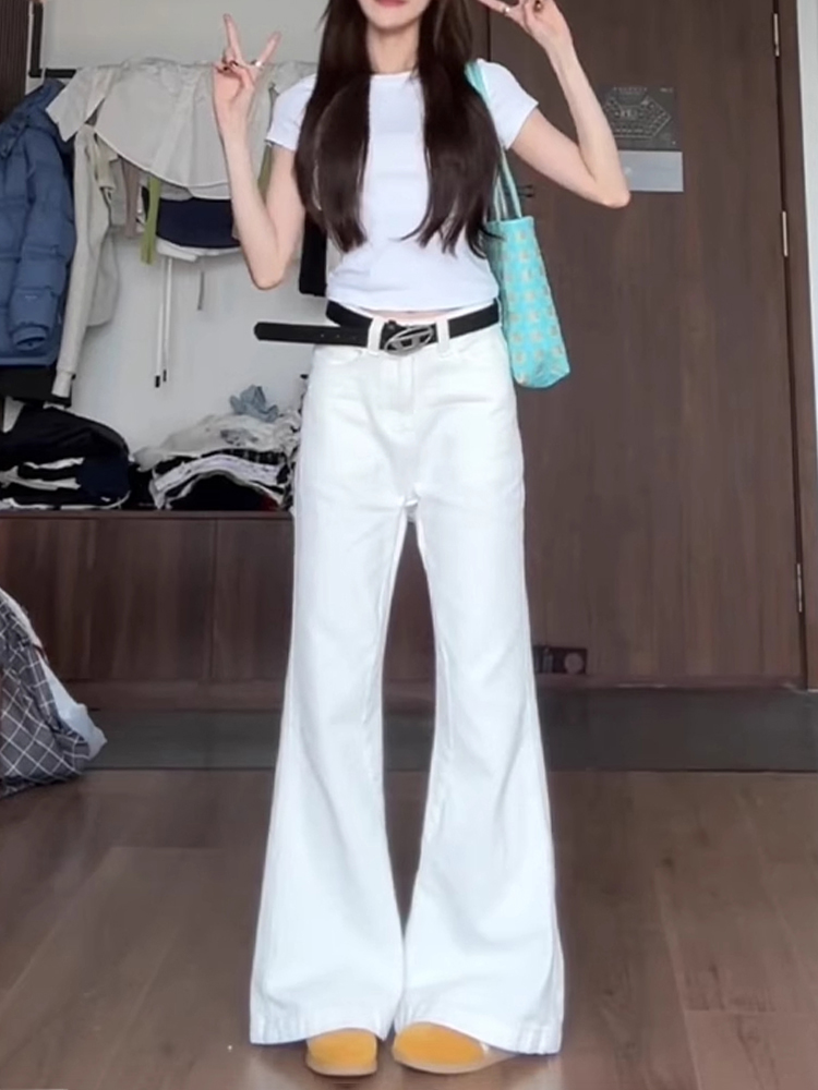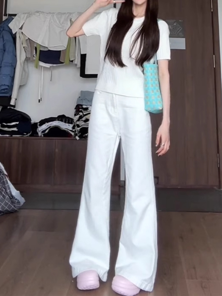 흰색 Slimless 청바지 여성의 봄 새로운 디자인 감각 느슨한 넓은 다리 슬림 스트레이트 트럼펫 바지
