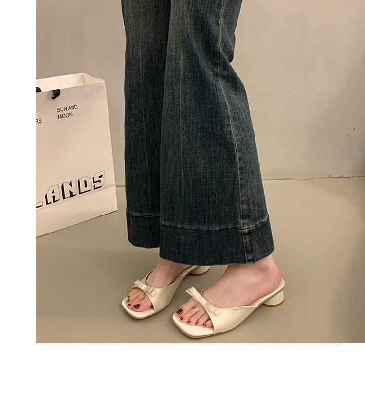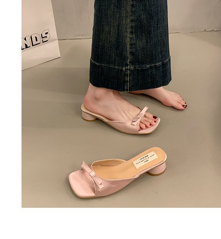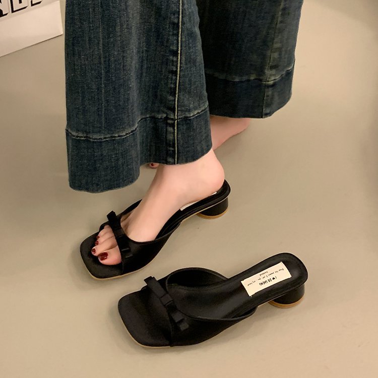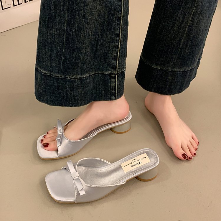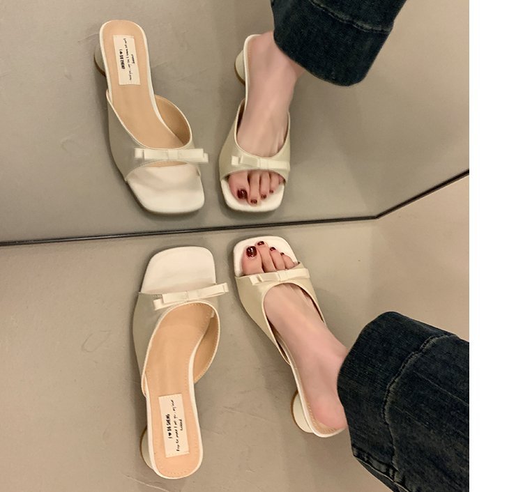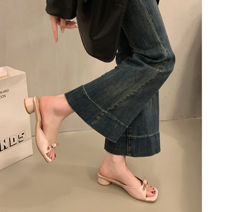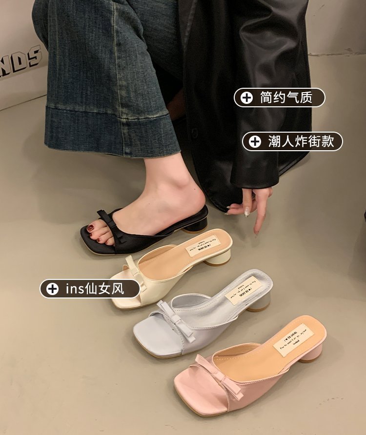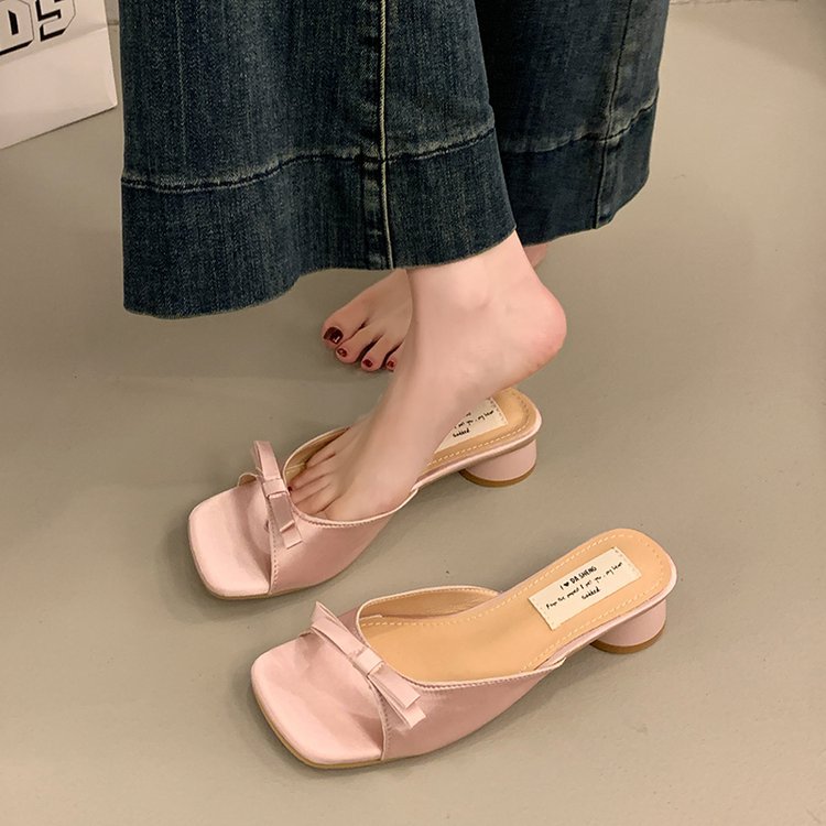 프랑스 스타일 이브닝 브리즈 부드러운 요정 슬리퍼 여성의 여름 외부 착용 새로운 도착 활 두꺼운 힐 하이힐 샌들