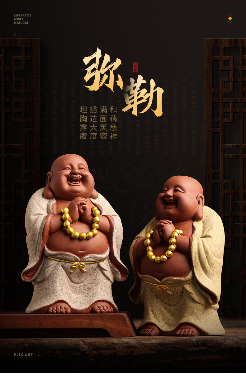 보라색 모래 색 Maitreya 부처님 웃는 부처님 새 중국 선 거실 사무실 장식 바탕 화면스토어 가기