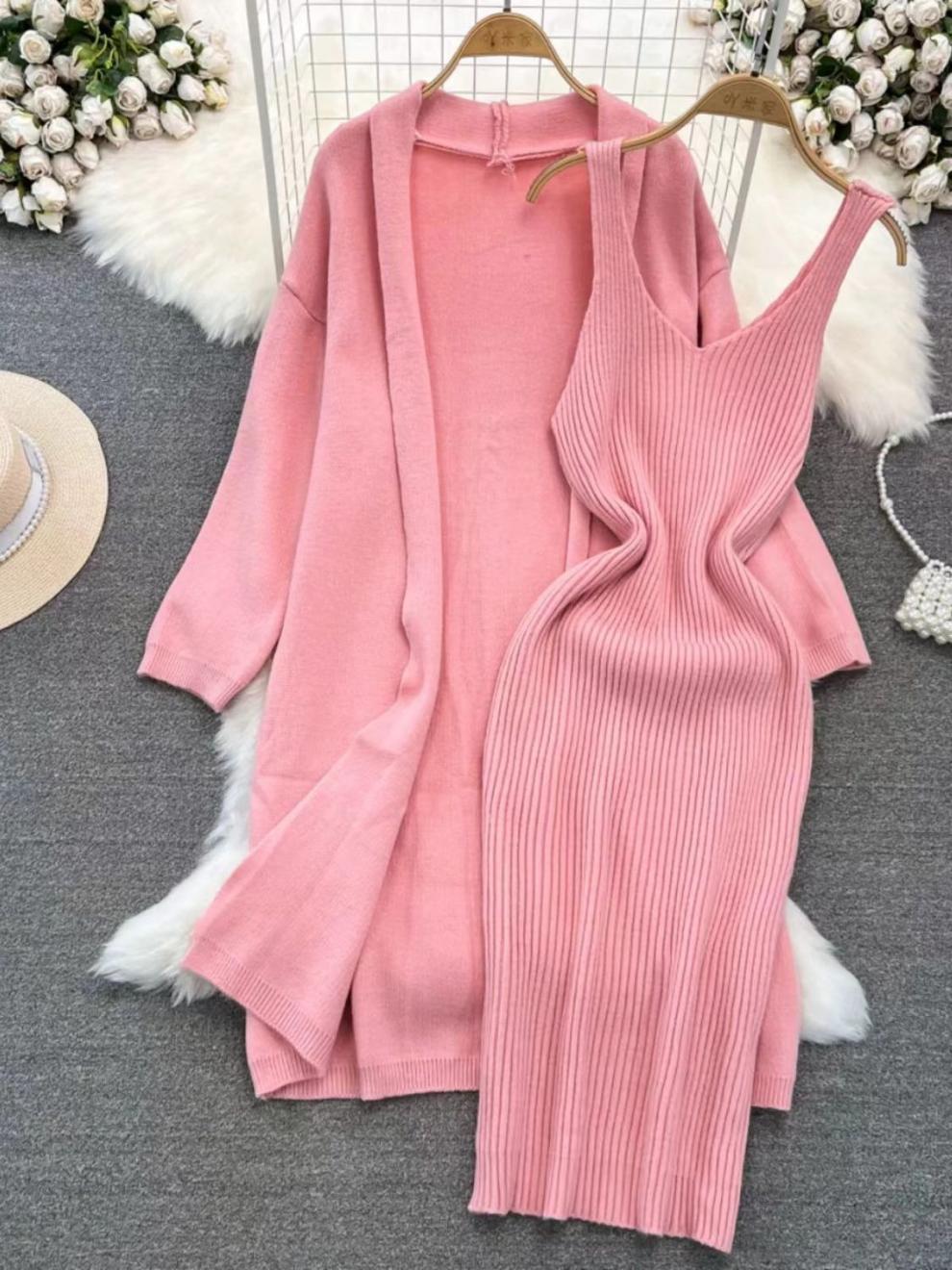 프랑스 니트 원피스 투피스 2025 봄과 가을 새로운 게으른 스타일의 기질 슬림 스웨터 코트 여성스토어 가기