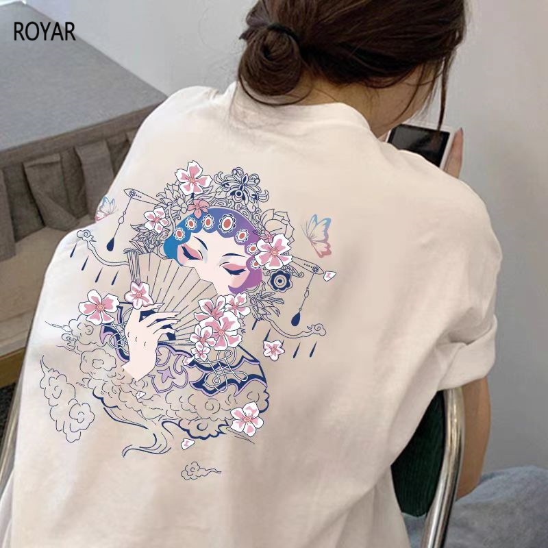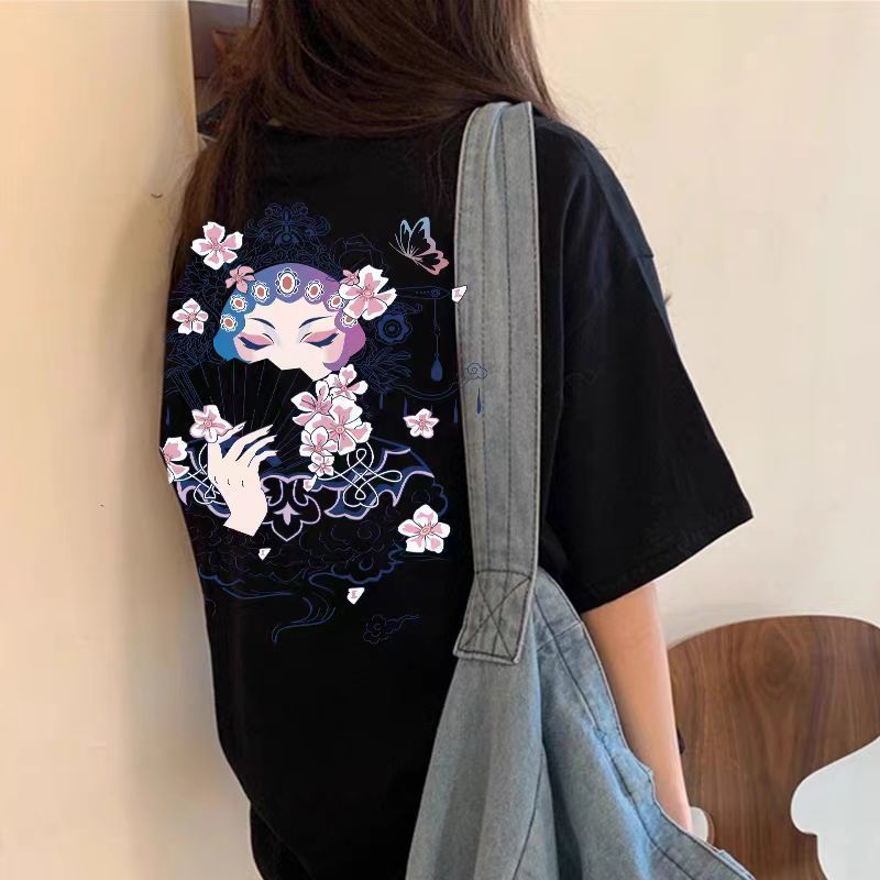 새로운 중국 스타일 국가 스타일 티셔츠 여성의 2024 새로운 국가 패션 짧은 소매 인쇄 느슨한 큰 느슨한 여름 면화 탑스토어 가기