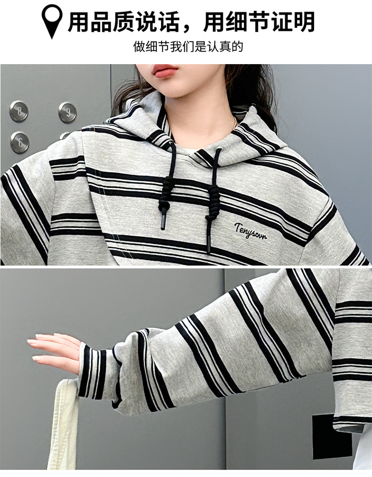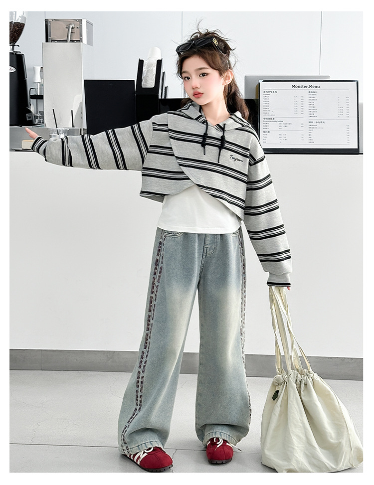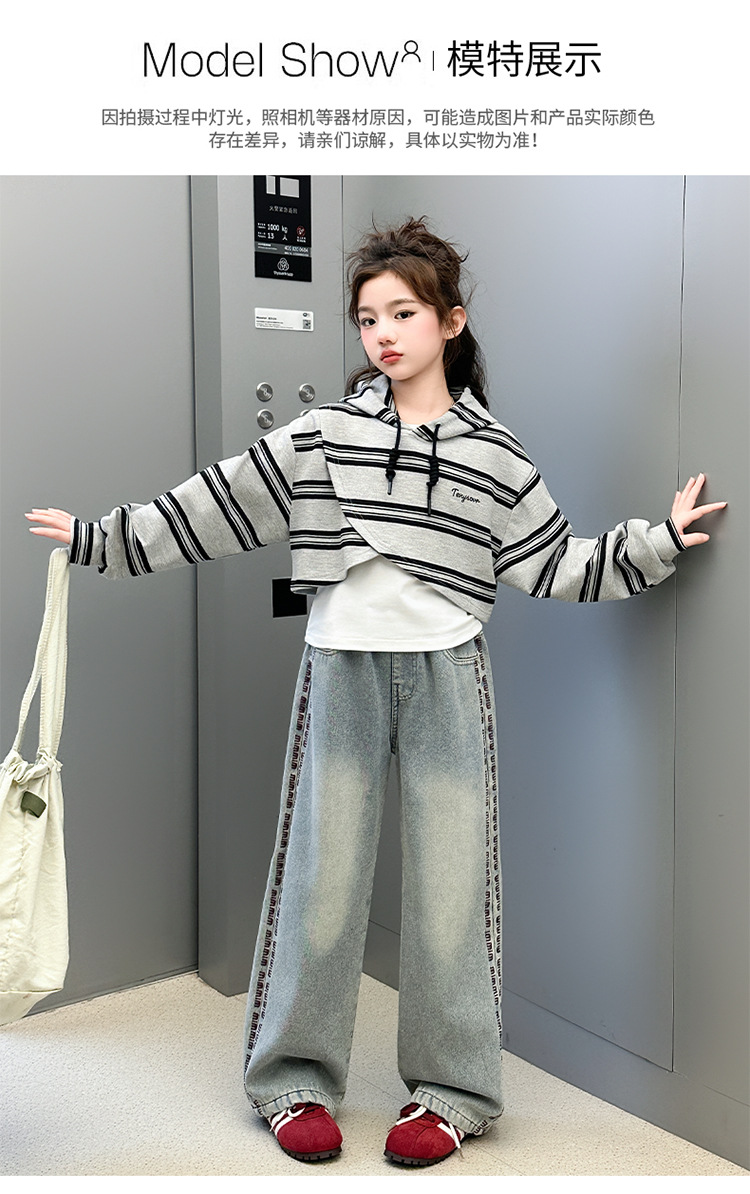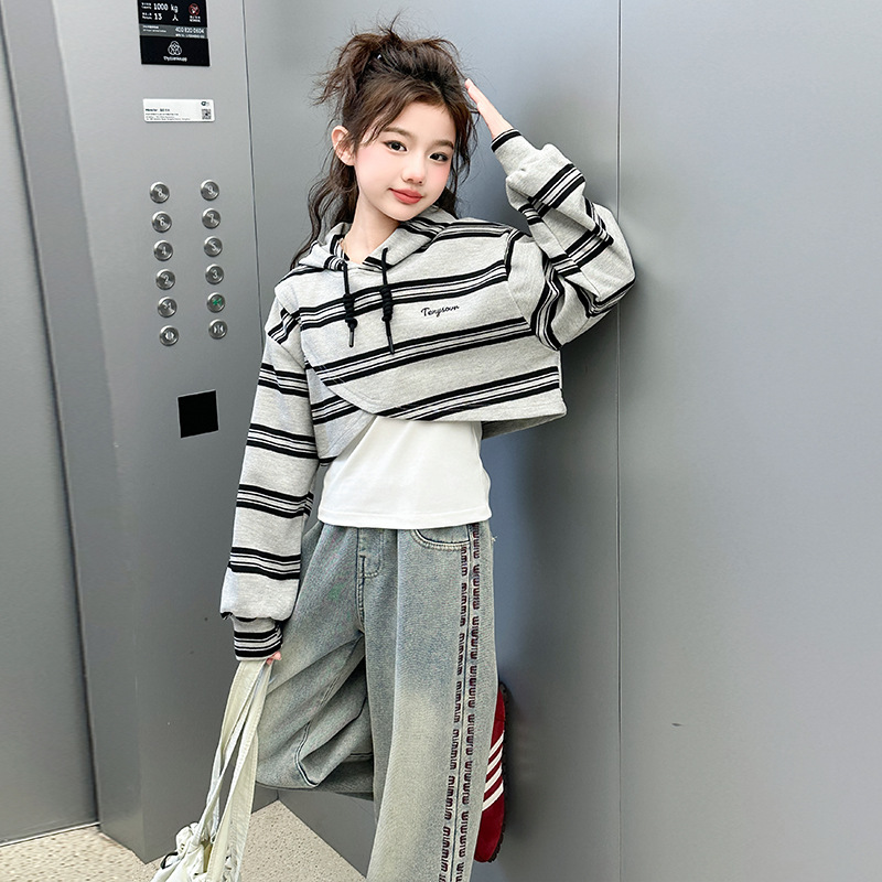 여자 세트 봄 한국 스타일 아동복 스포츠 인터넷 연예인 느슨한 후드 학생 소녀 3 피스 세트 Huzhou Zhili