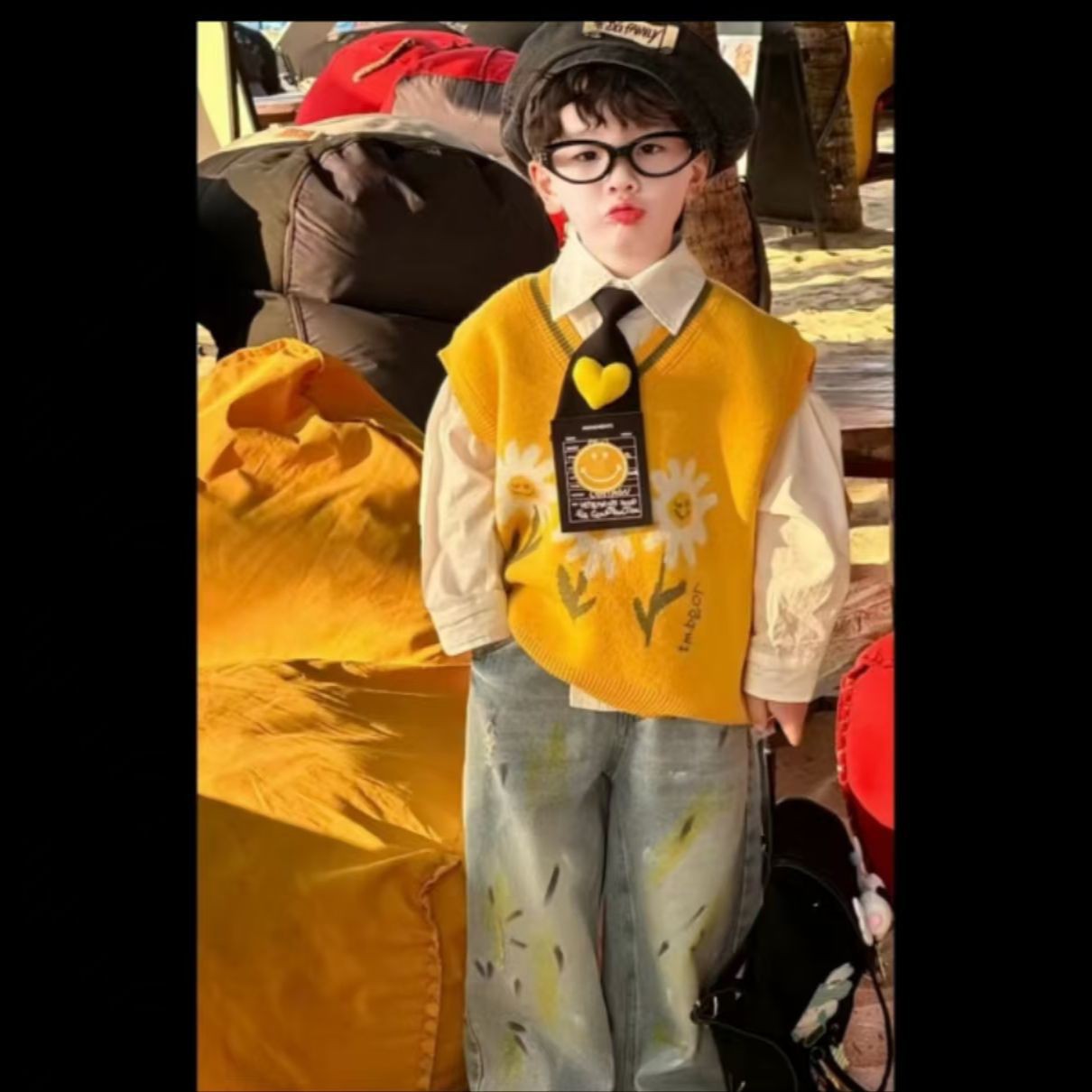 • 셔츠 + 넥타이 + 스웨터 조끼 + 그래피티 청바지 3종 세트 + 넥타이
