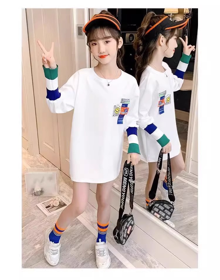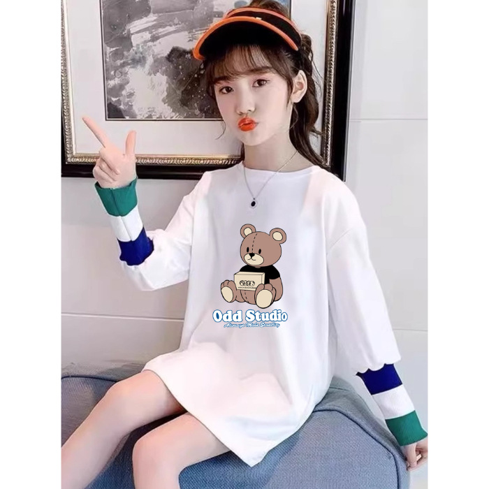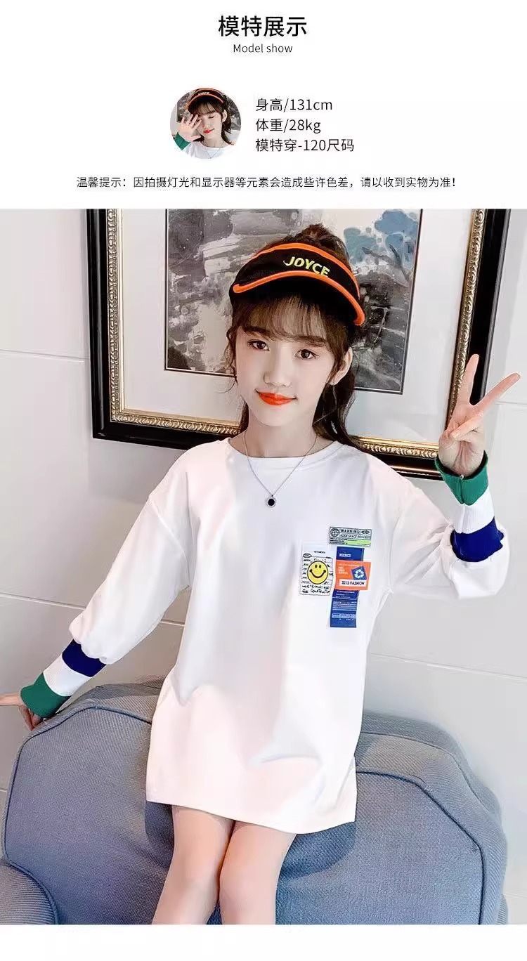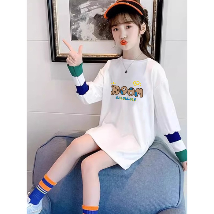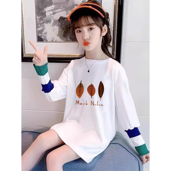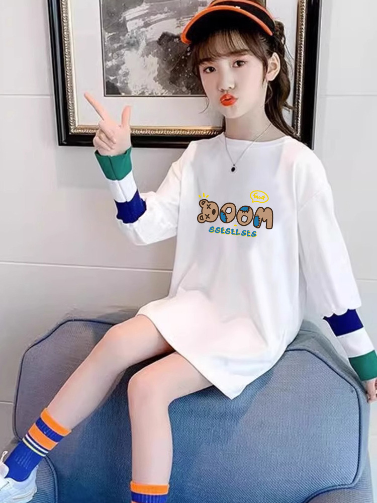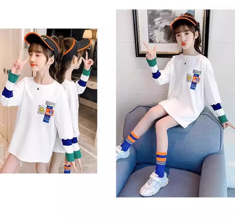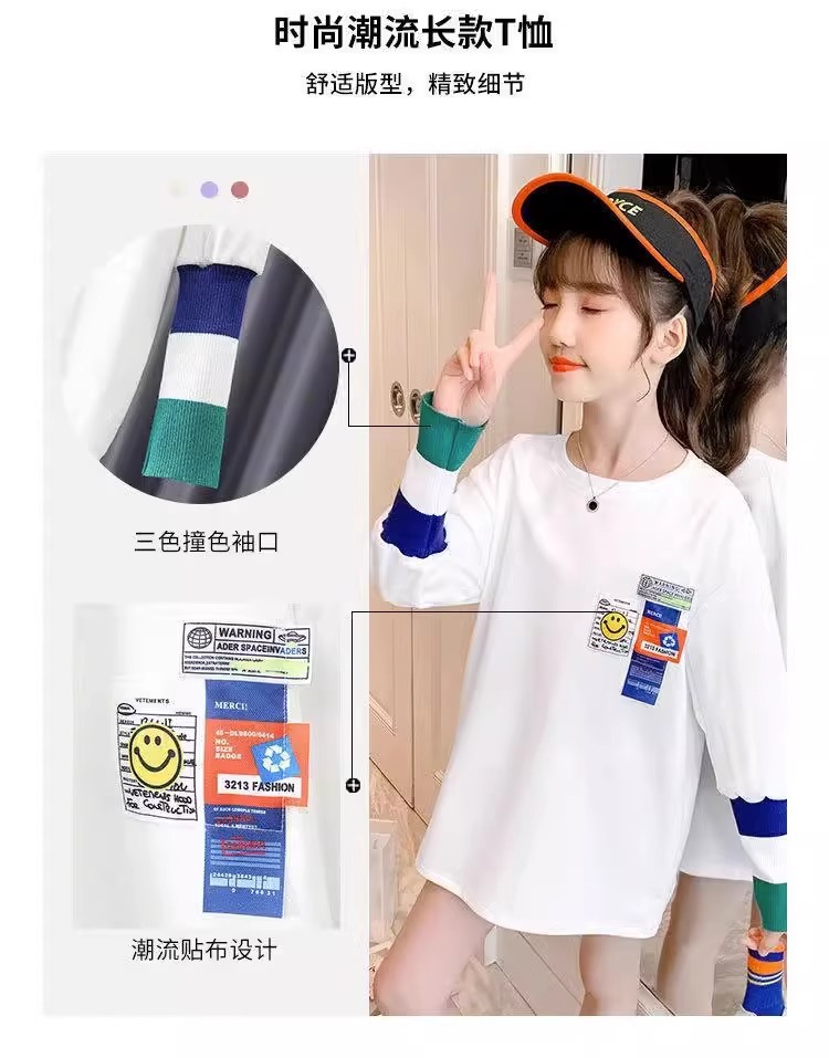 소녀 긴팔 티셔츠 봄과 가을 2025 새로운 스타일 서양식 백베이스 셔츠 중간 길이의 대비 컬러 탑스토어 가기
