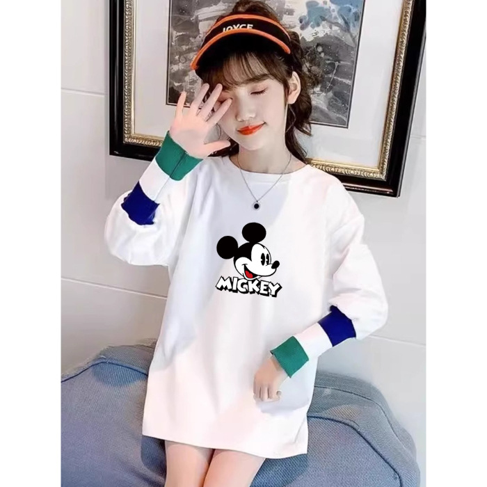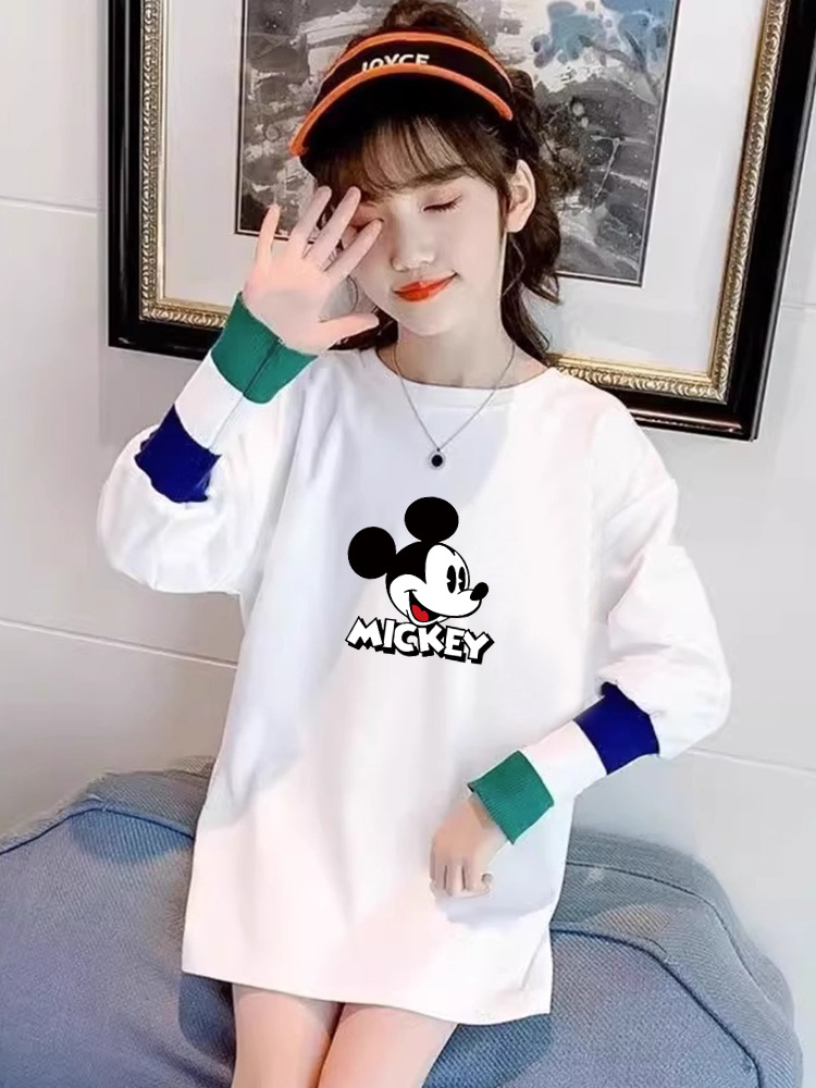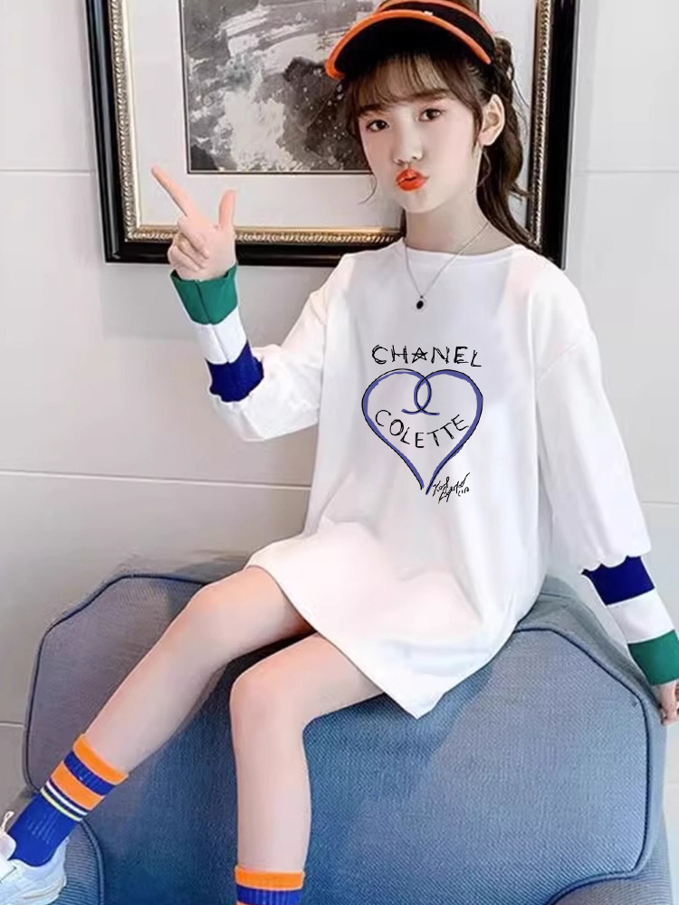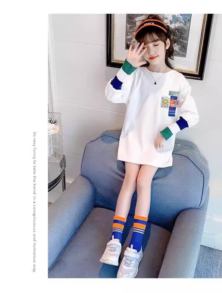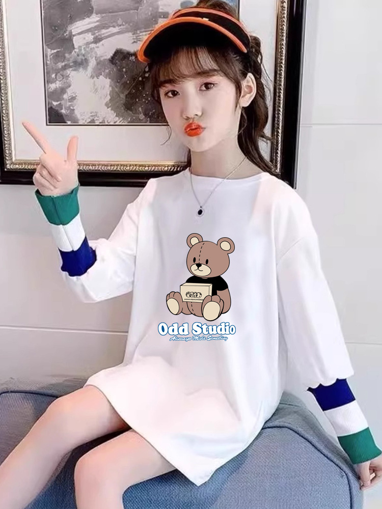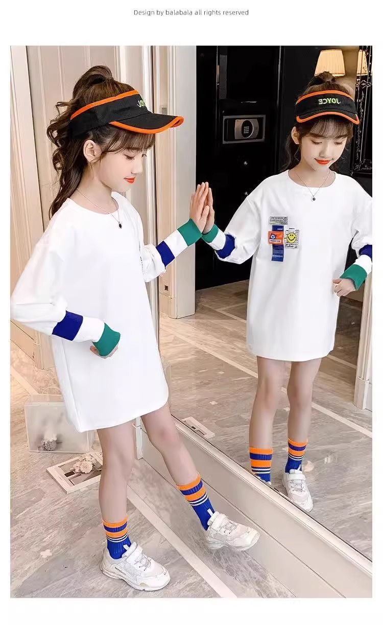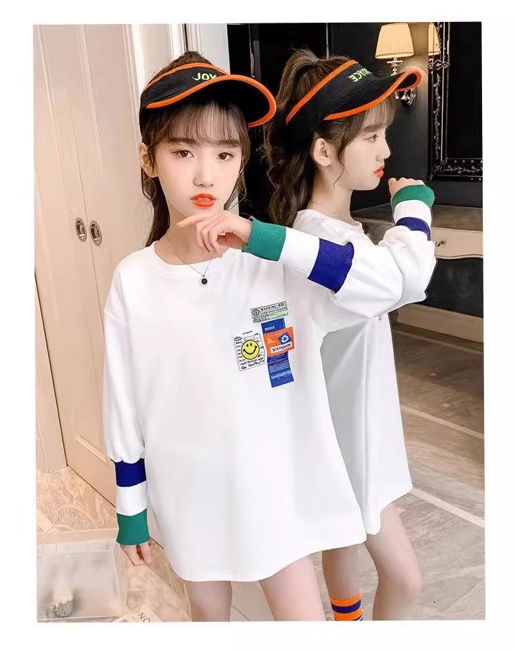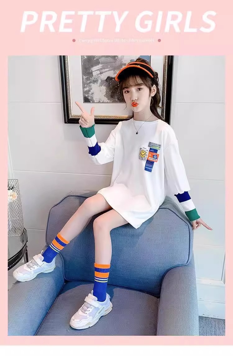 소녀 긴팔 티셔츠 봄과 가을 2025 새로운 스타일 서양식 백베이스 셔츠 중간 길이의 대비 컬러 탑스토어 가기