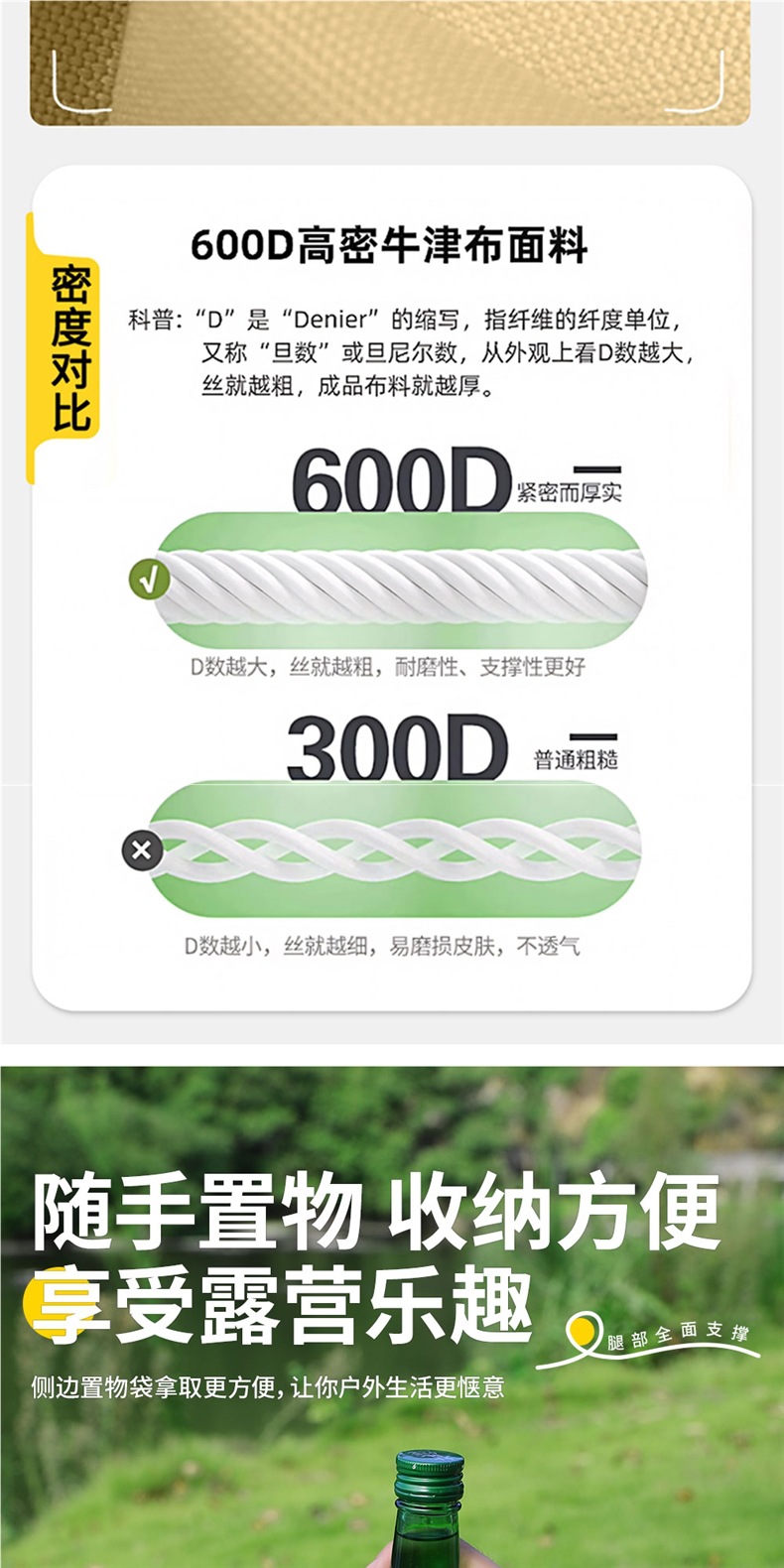 • 『강화된 전복 방지/내하중 120kg』 앉기와 눕기 2단계 조절 가능 - 카키색상