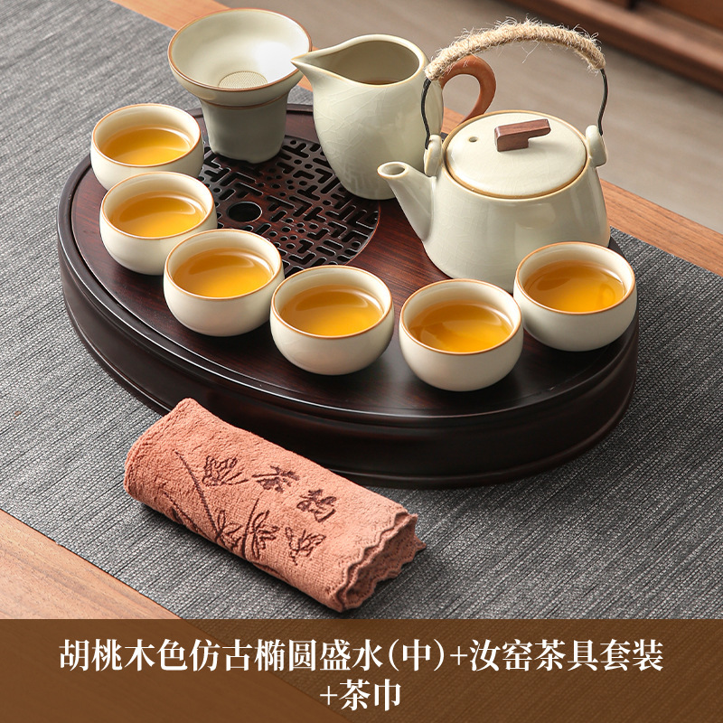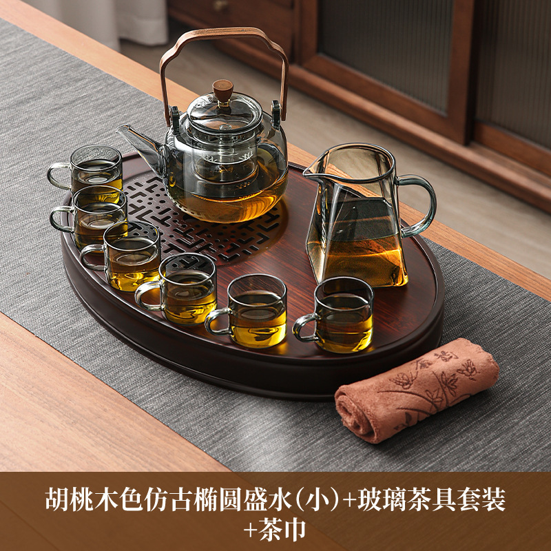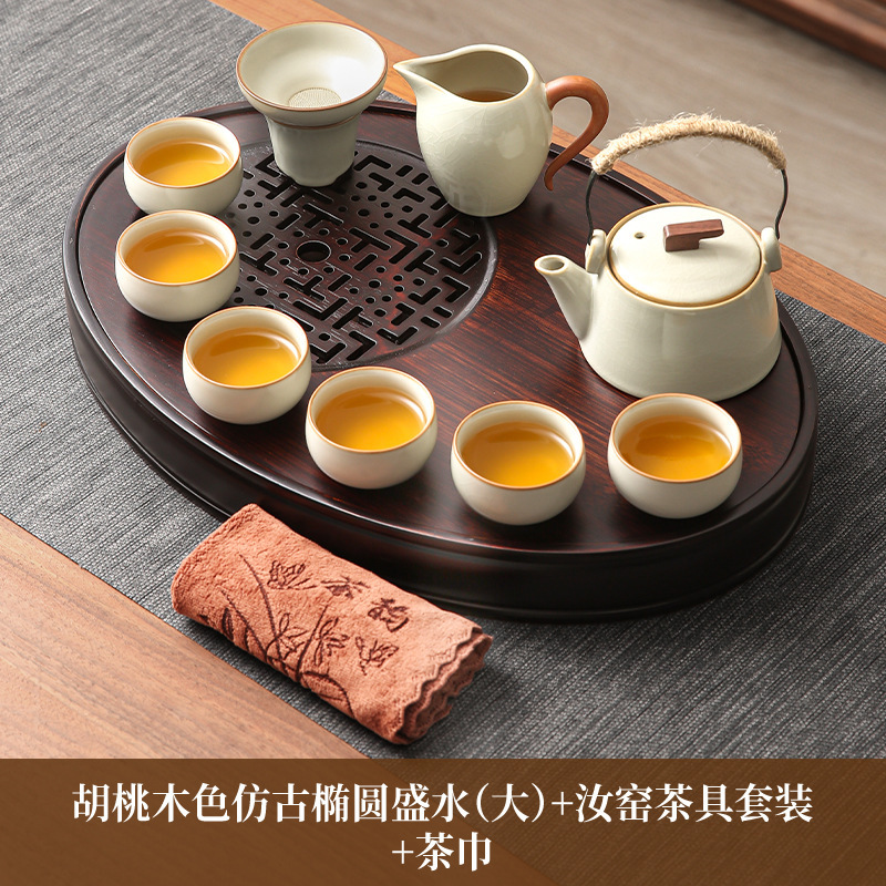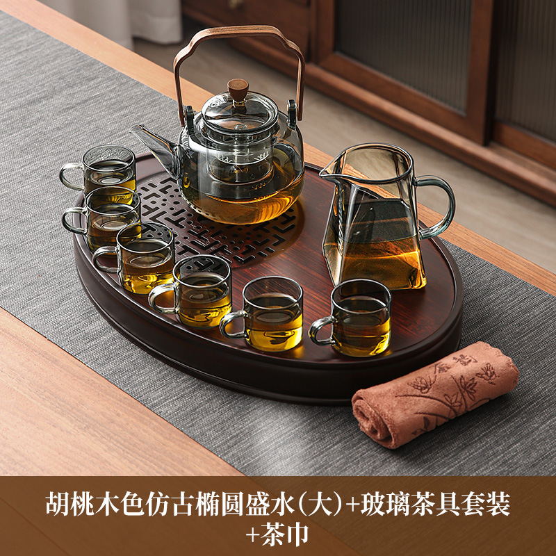• 호두색 타원형 물차 트레이(대) + 여요차 세트 + 티 타월