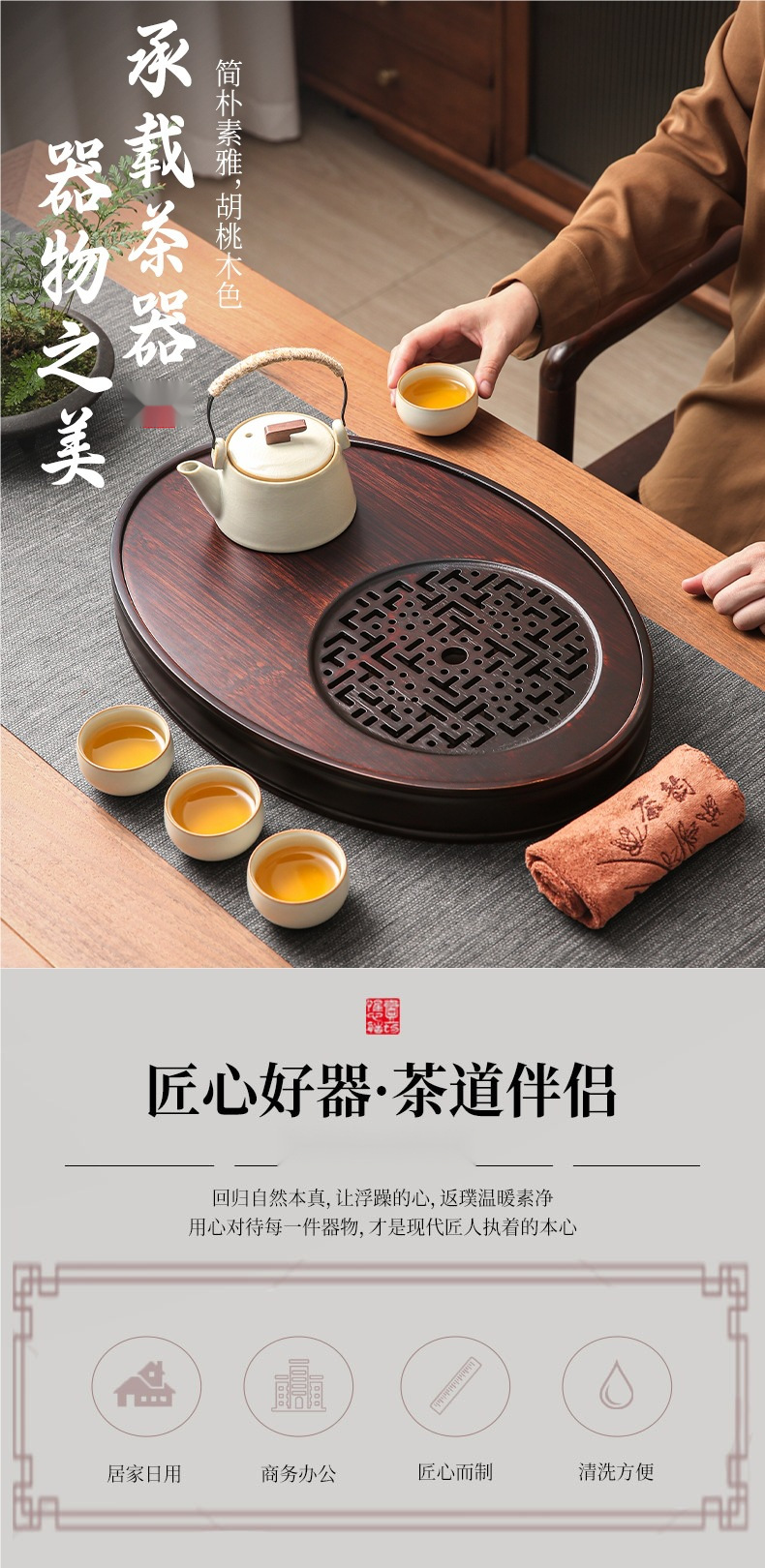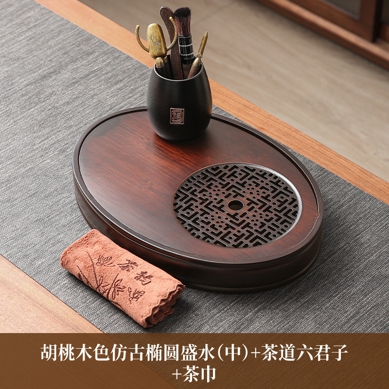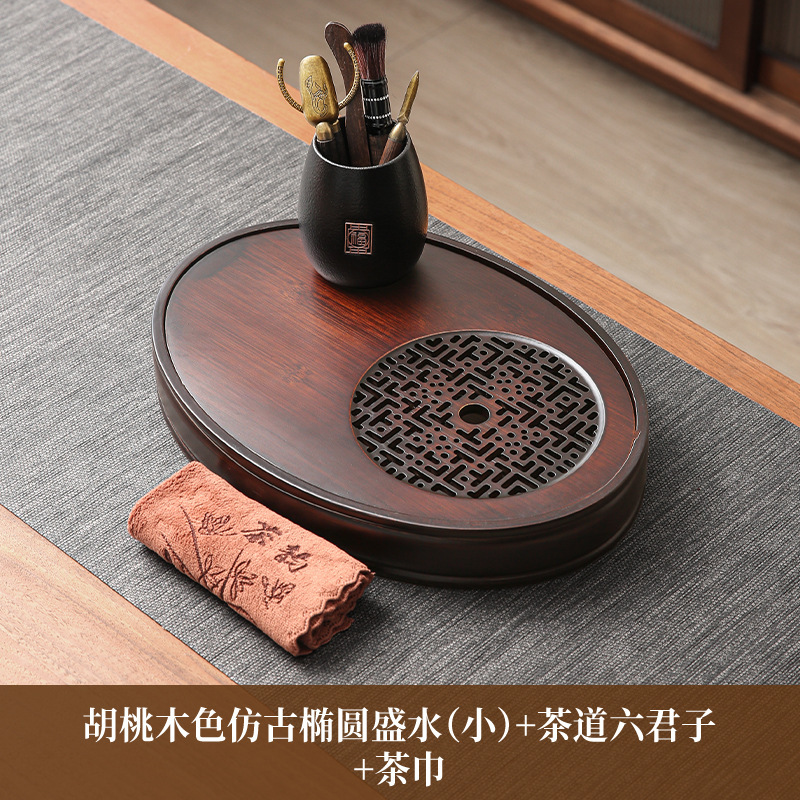 • 호두색 타원형 물차쟁반(중) + 다도육군자 + 티타월